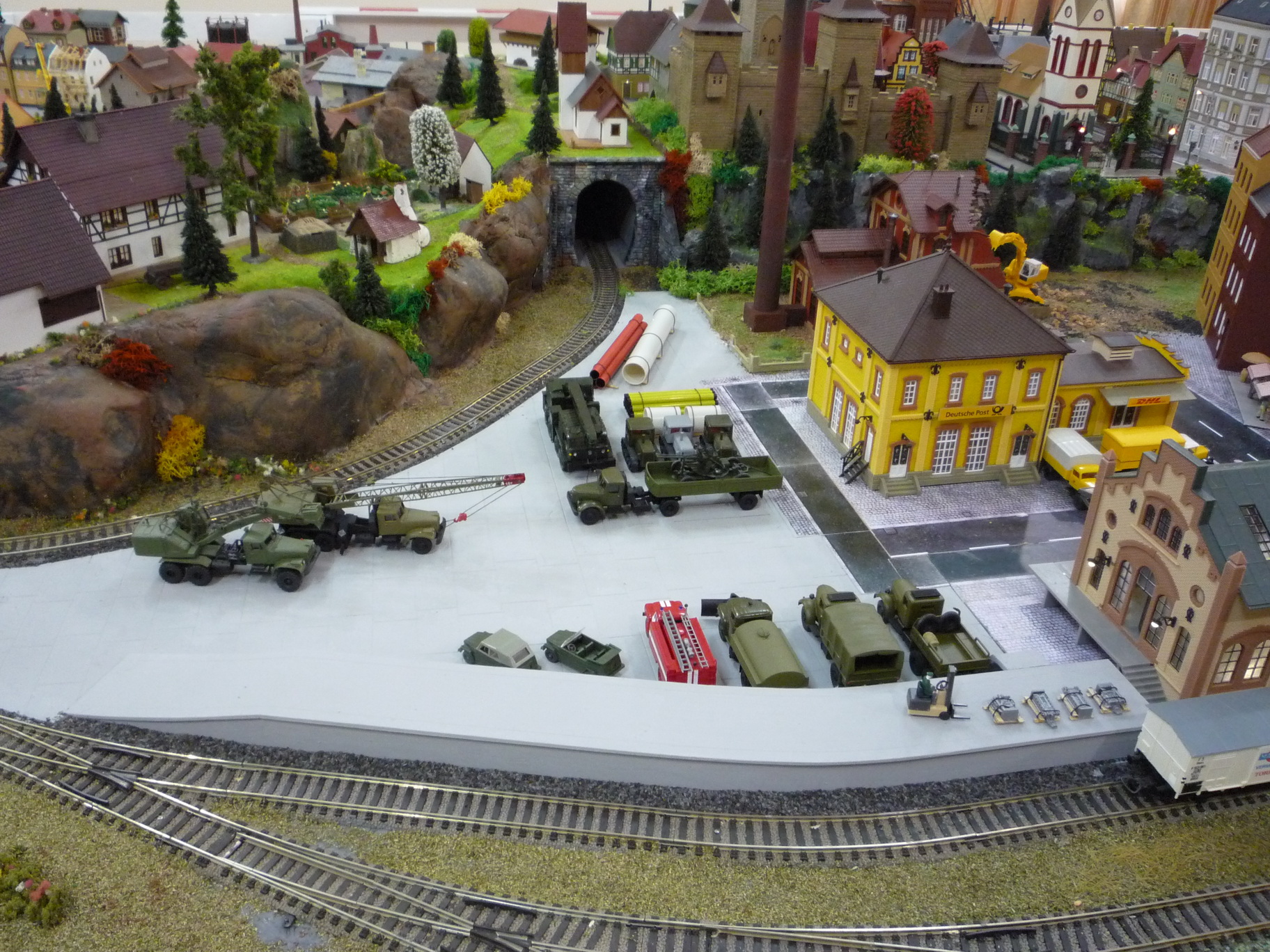 Городок Fortstadt - 6 модулей 700х300, создатель Андрей Шинкаренко Большой безымянный город - 4 модуля 1000х500, также Андрея. Аквапарк - 1100х800, моя сборка. Вокзал Bonn 1100х300, Леонида Фисенко. Ну и так далее. В общем, выгребли по строениям практически подчистую три коллекции.