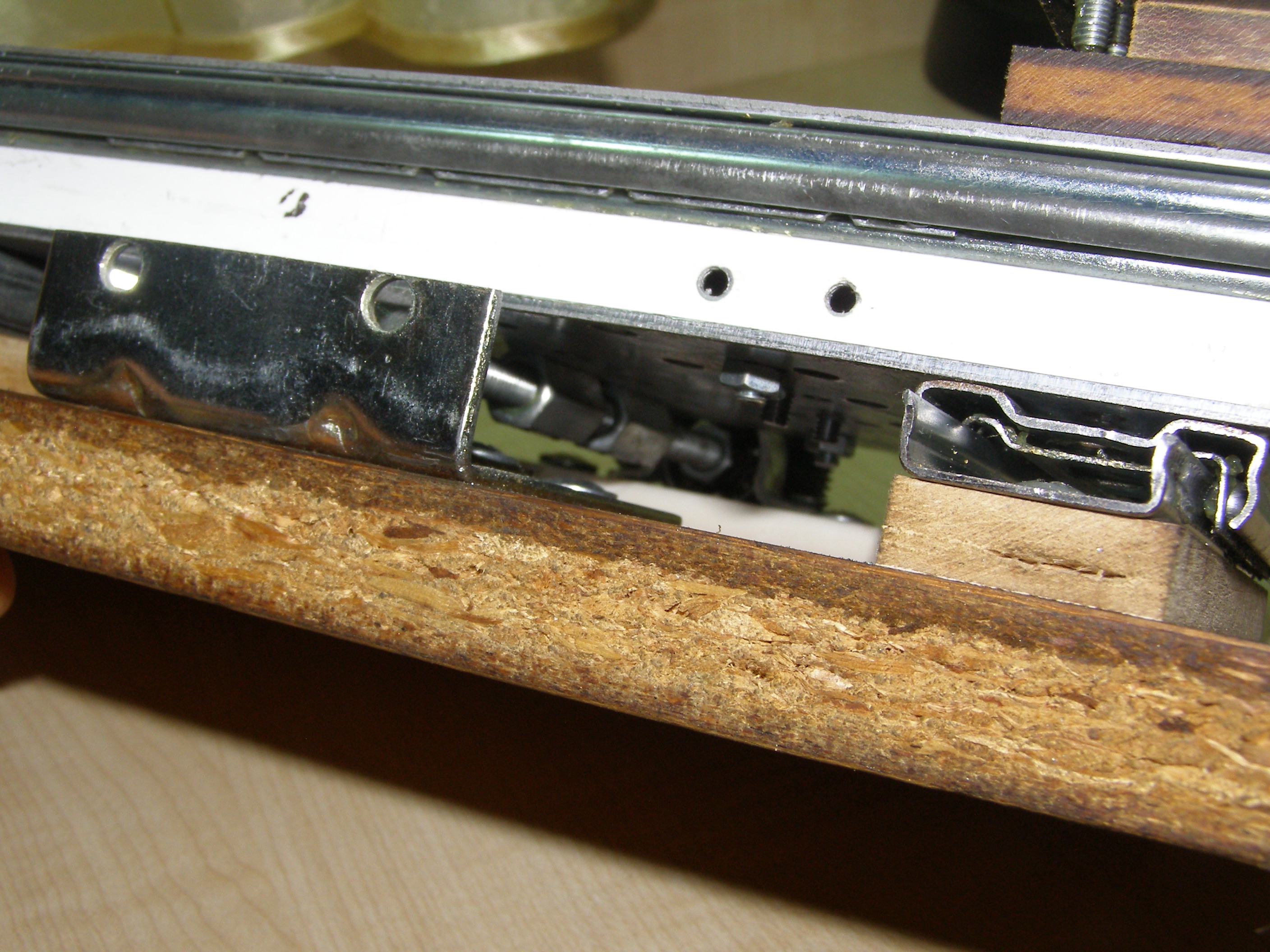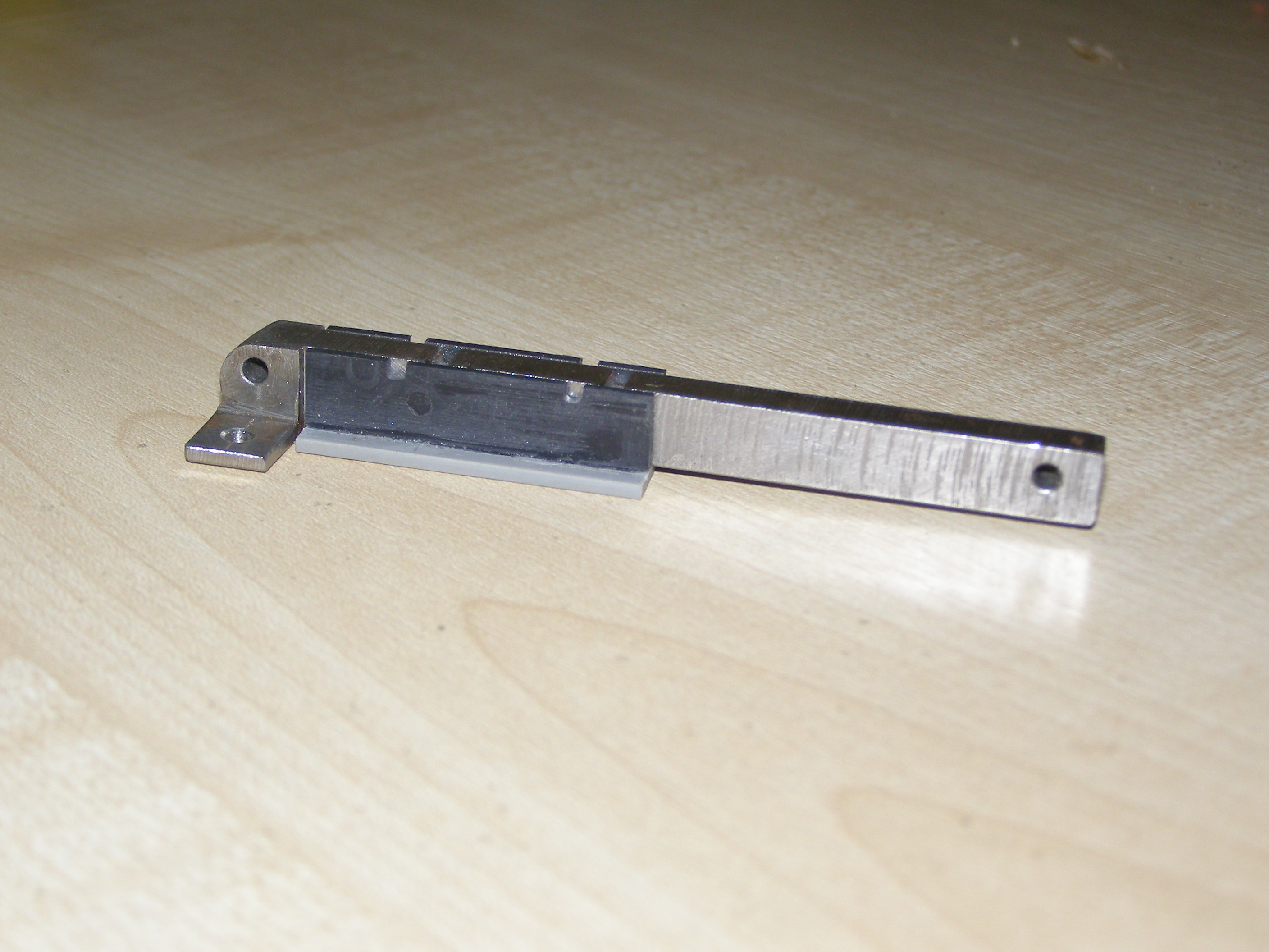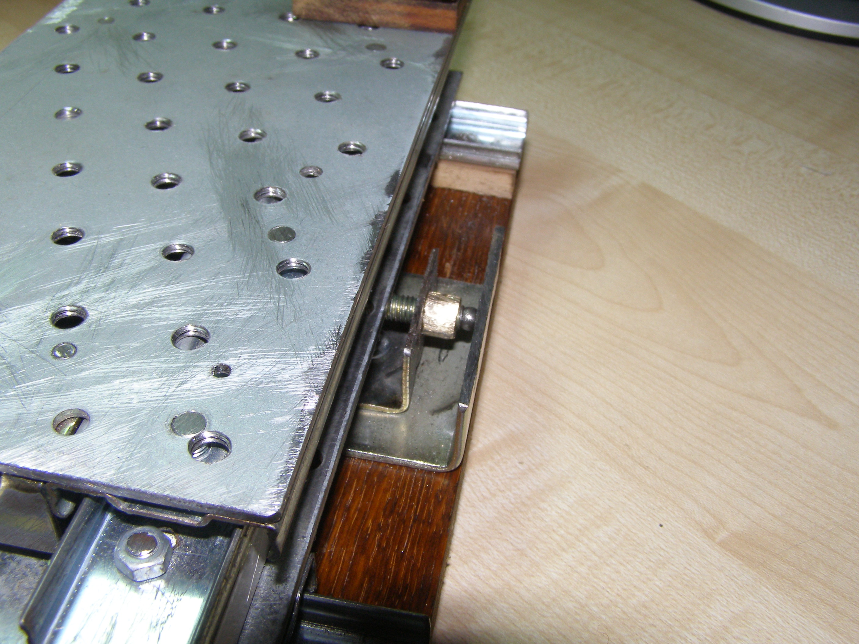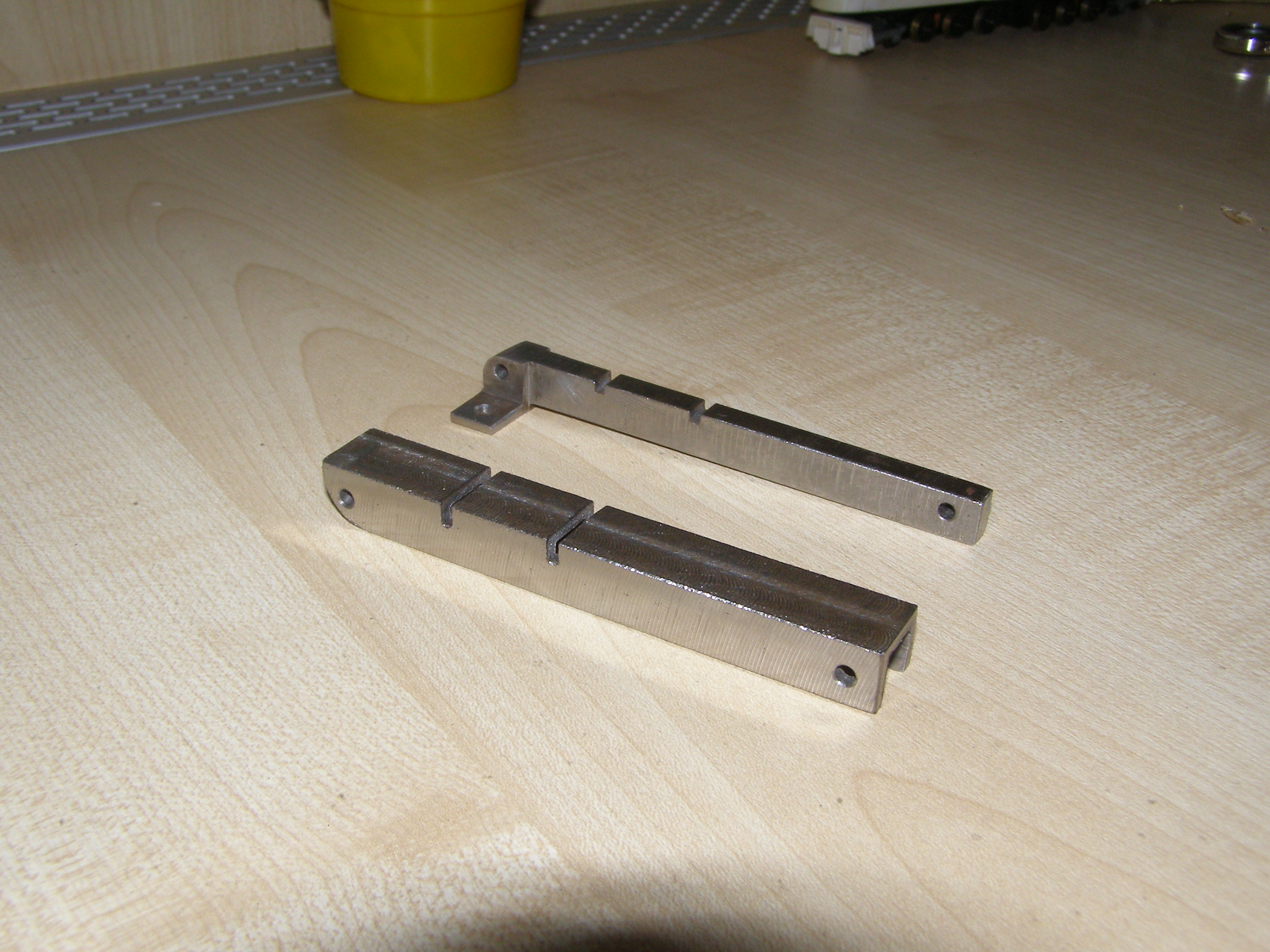 После этого решил что можно попробовать поточить колеса из металла, из бронзы например. Для этого нужно было сделать координатный стол. Посмотрел как это делает народ в сети. Вот например http://www.koga.net.pl/forum/viewtopic. ... 36&t=35589. И я тоже решил из подручных материалов вот сделать такой столик. В качестве направляющих использовал мебельные направляющие, другого ничего не было. Конечно это не самый лучший вариант, но для моих целей - точить всякие мелкие кругляшки я думаю пойдет,все равно это лучше, чем точить руками на весу. И вот что получилось: