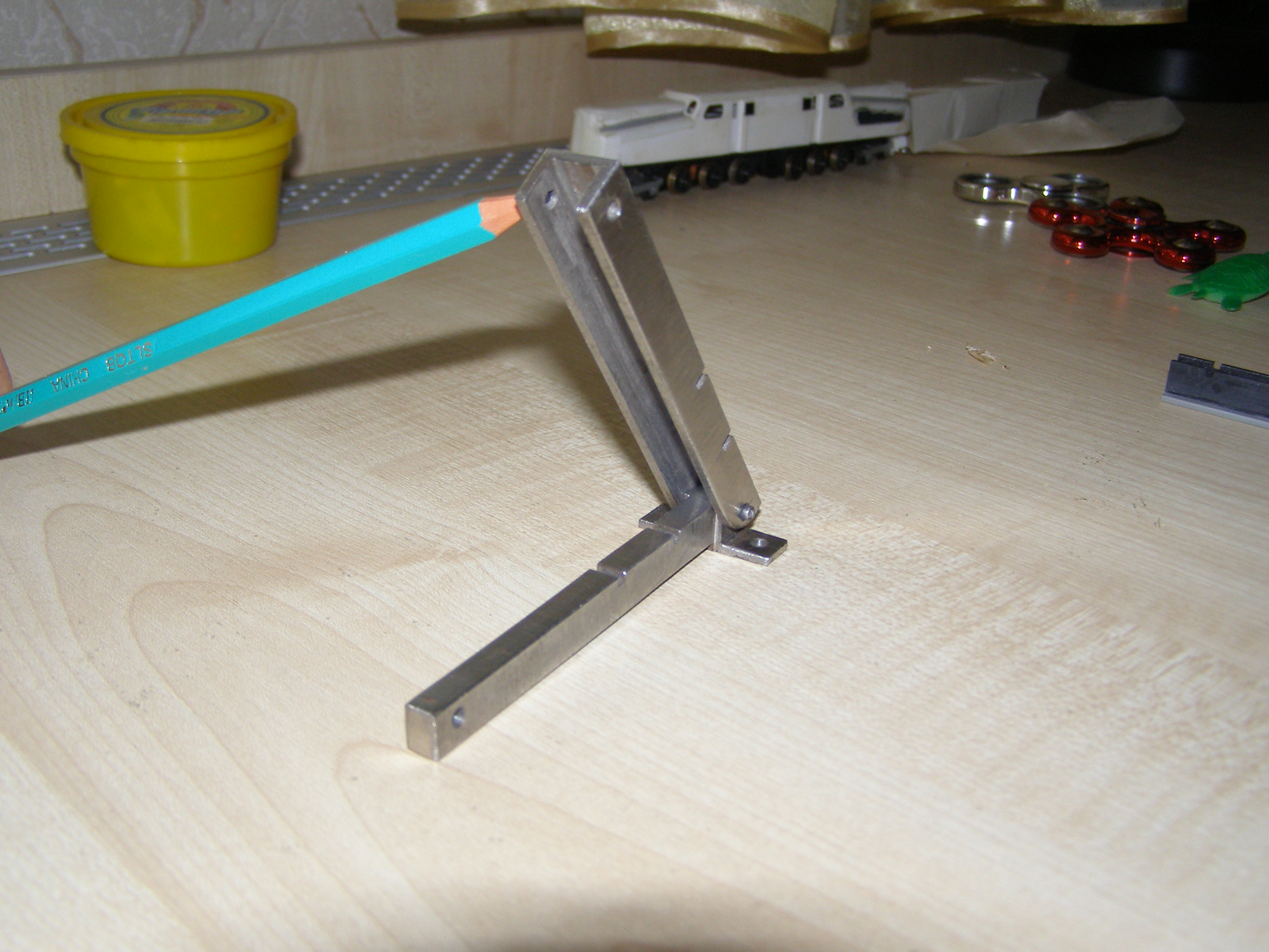 Еще есть у меня одна приспособа, которую сам придумал: Она мне понадобилась для упрощения процесса склейки тележек. Это что-то вроде такой оправки совмещенной с прессом.