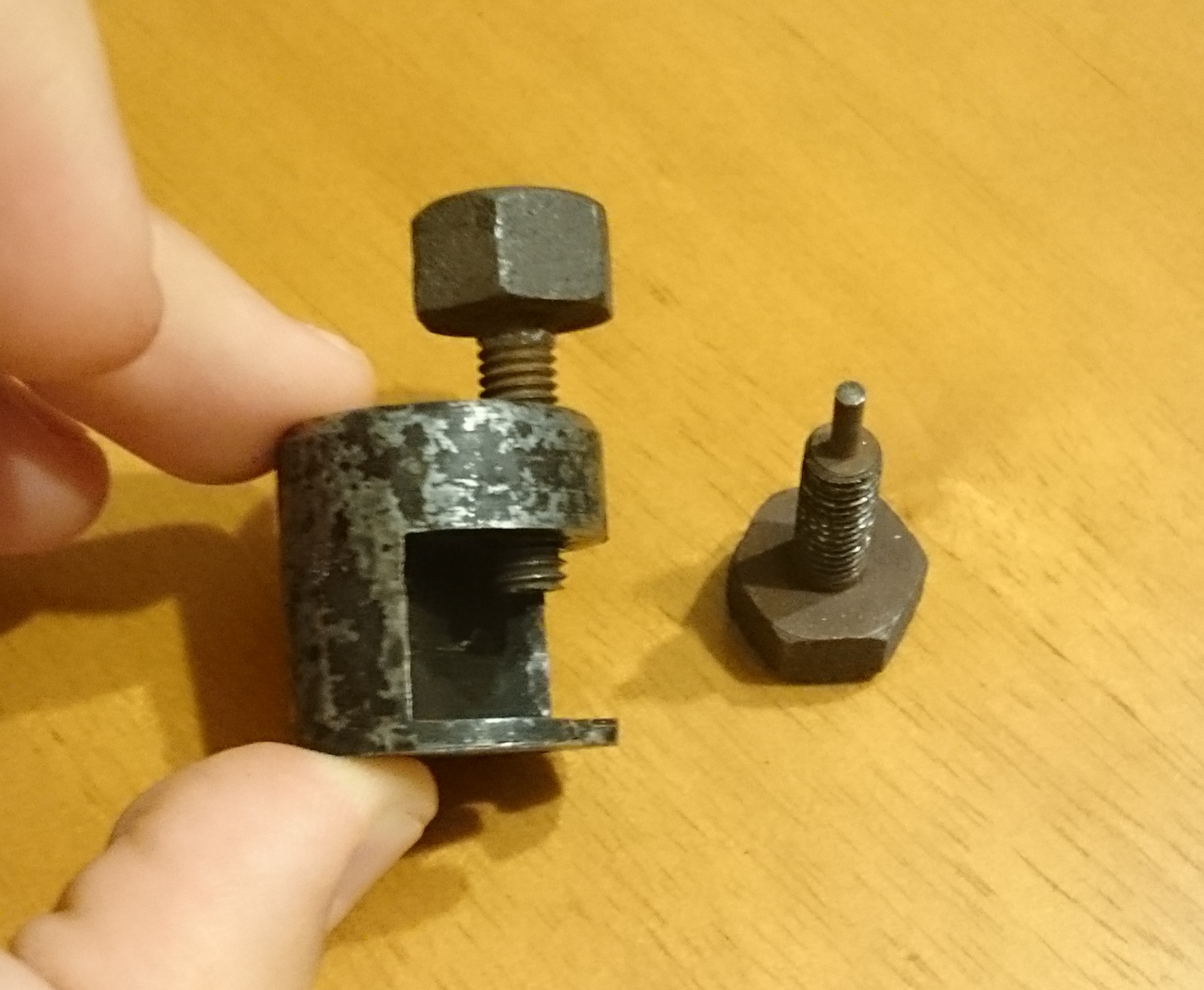 Из интересного инструмента есть пока только такая вот приблуда для снятия/распрессовки колесных дисков/шестерен/червяков. Правда подходит не на все диаметры пока