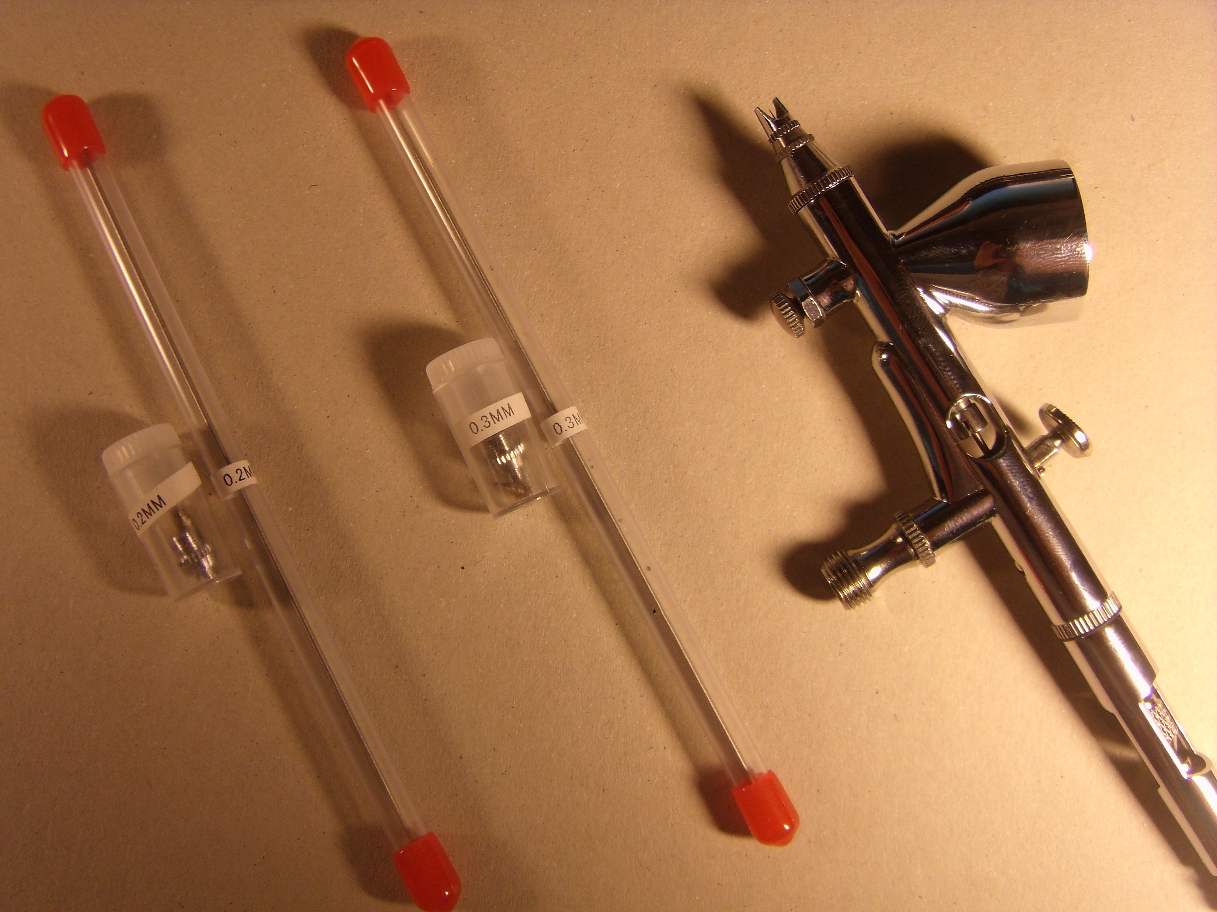 1 большая приятность - в комплекте тут 3 набора игл с соплом, а именно 0.3 0.2 и 0.25 в самом аэре.