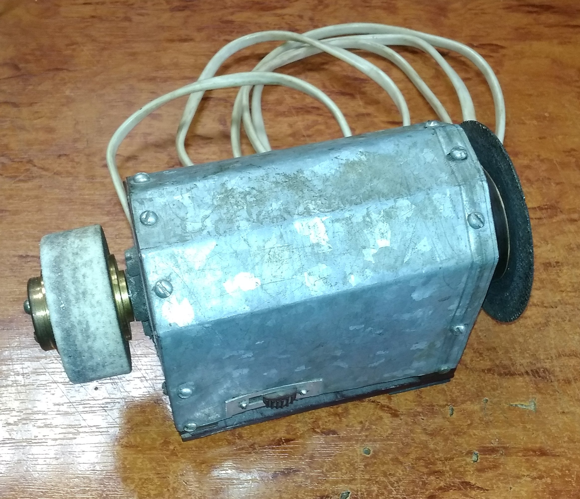 Так, постепенно мельчая, появилось настящее "моделистское" точило. 220 В, небольшая мощность, умеренные обороя, минимальные размеры. Прошу любить и жаловать!