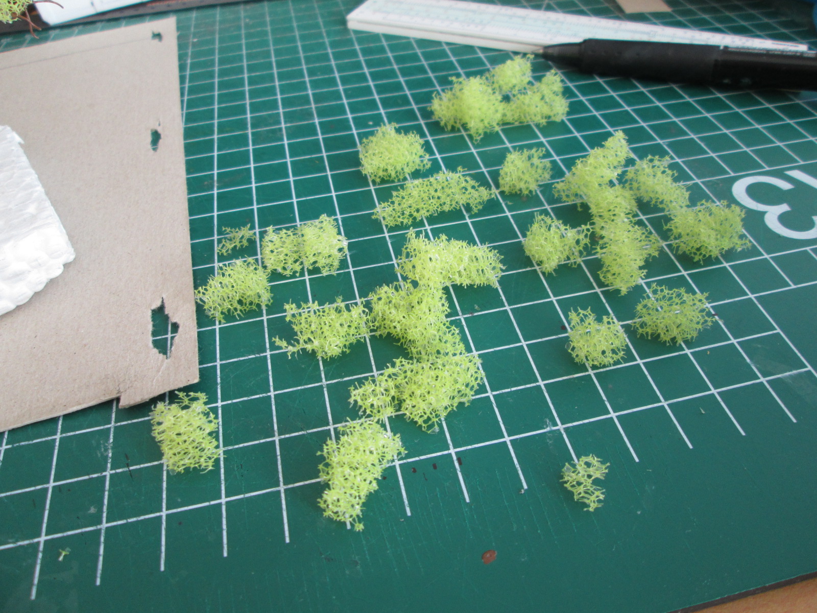тут еще подумал: а с чего бы листья сделать? может пойдут реальные листья высущенные и перемолотые? а также пересеянные через ту же сетку чем камни сею