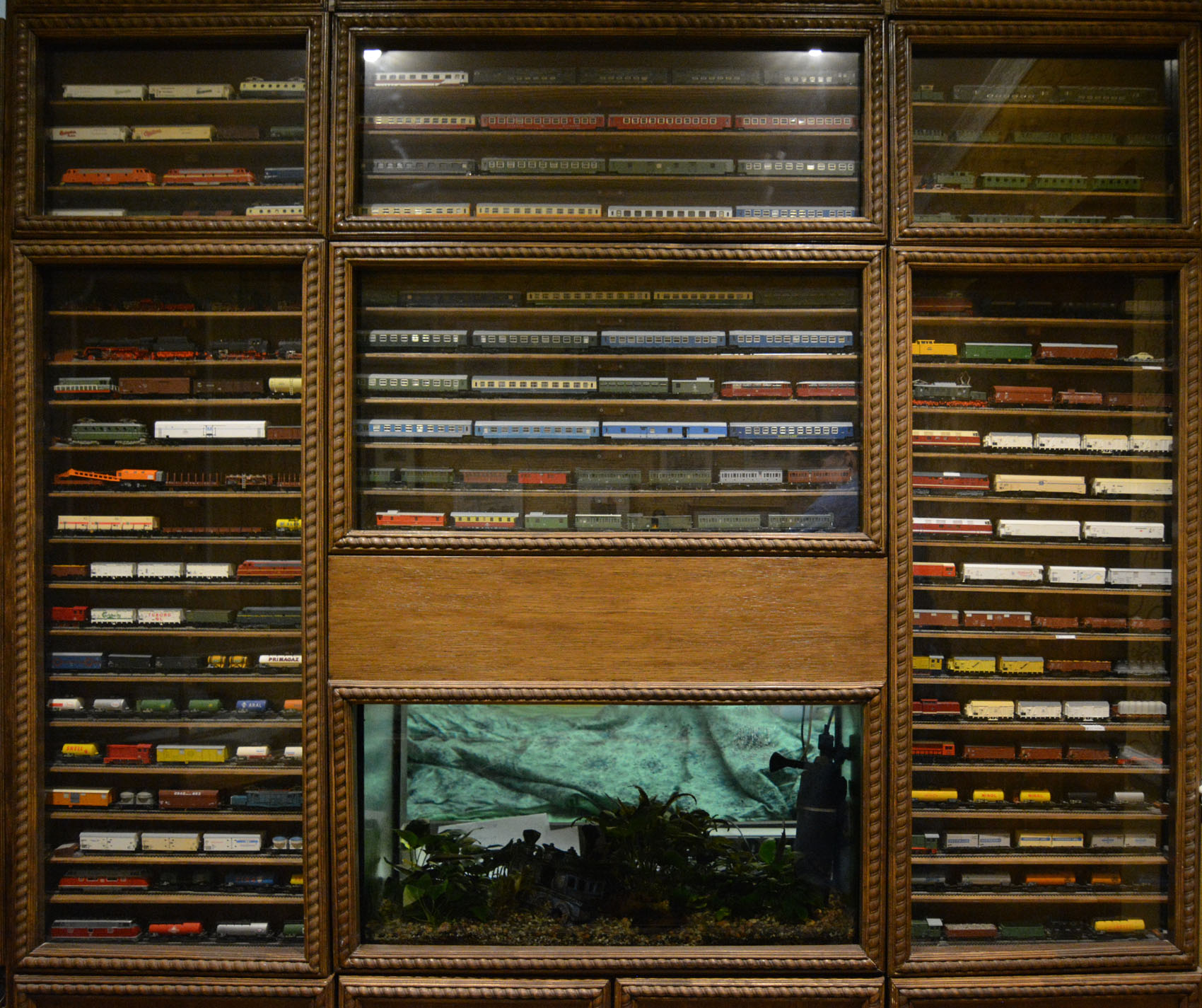 Теперь вся эта красота уместилась в специально спроектированном шкафу, вместе с аквариумом и витриной для минералов супруги и еще кучей всяких отделений и секций. Так вышло, что макет, начатый раньше, до сих пор в плачевно-недоделанном состоянии, БАМ строился быстрее... Во всяком случае, огромное спасибо жене за то, что это терпит!