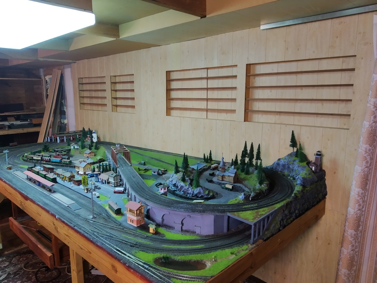 В принципе, это очень хорошо, что сразу не довёл проект до финала. Если бы и довёл, то финал был бы фальш-финалом. Общая концепция было основательно пересмотрена и переработана. Для начала макетная стала длиннее на 1,2 м. Отделочные работы не были завершены и к сбору единомышленников в феврале южную стену просто задрапировал шторами.