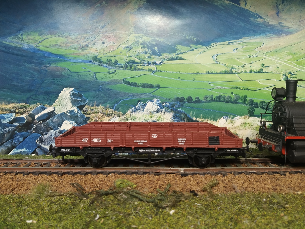 Пожелания учтены. И вообще подошёл к этому вопросу серьёзно. Нашёл, в частности, соответствующий документ. И поехали. Только сильно сказывается, что все три платформы американо-канадского типа пока на пластиковых колпарах - тепловоз тяжело одолел подъём перед мостом.