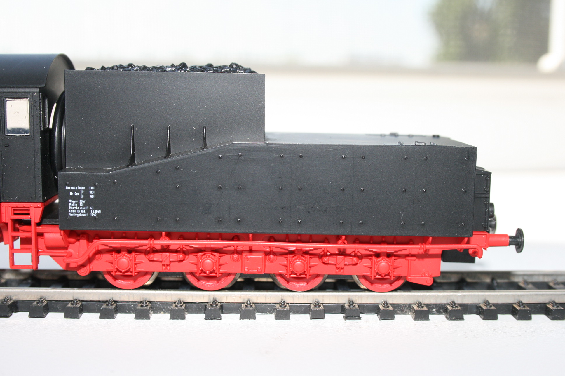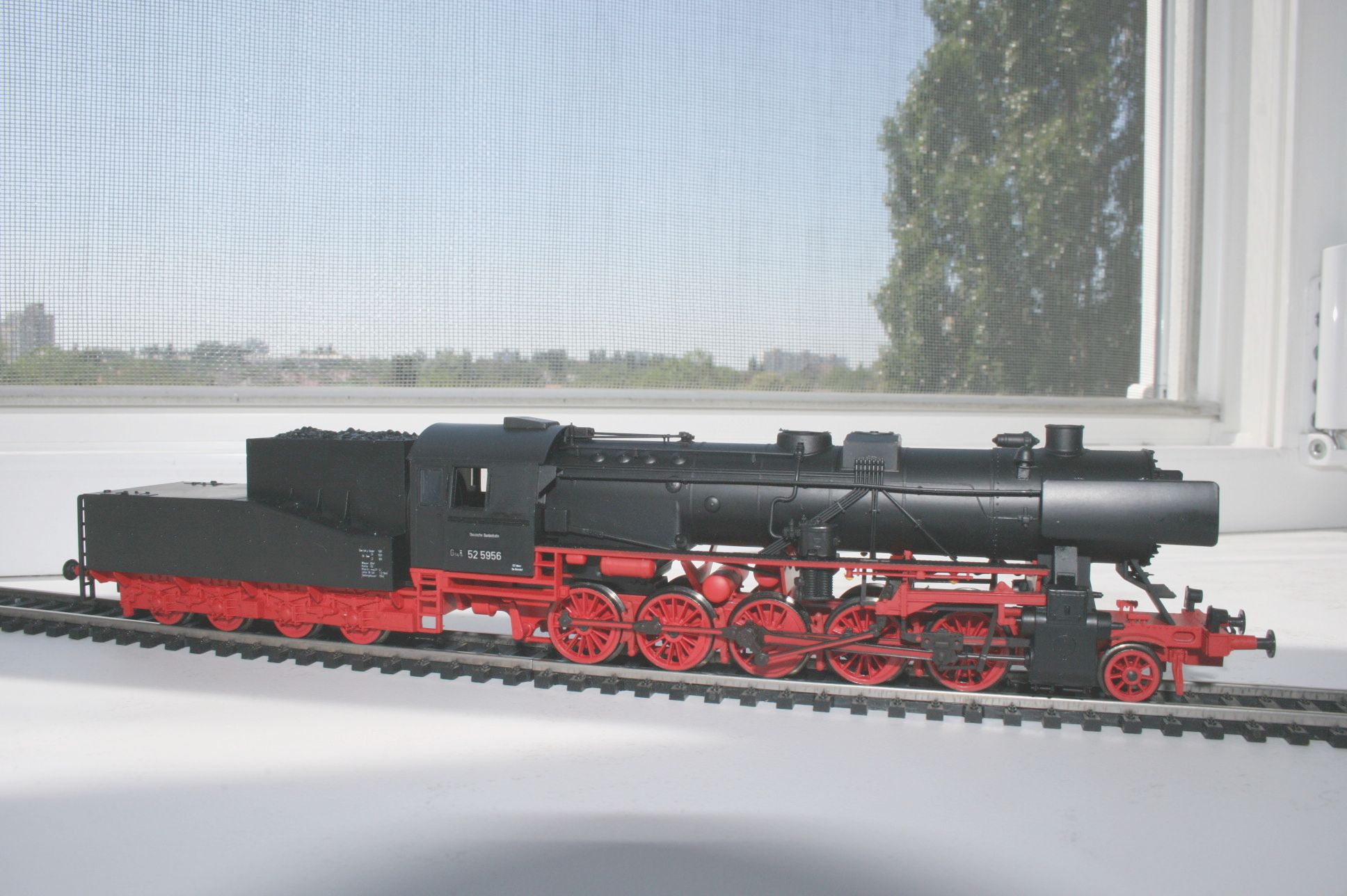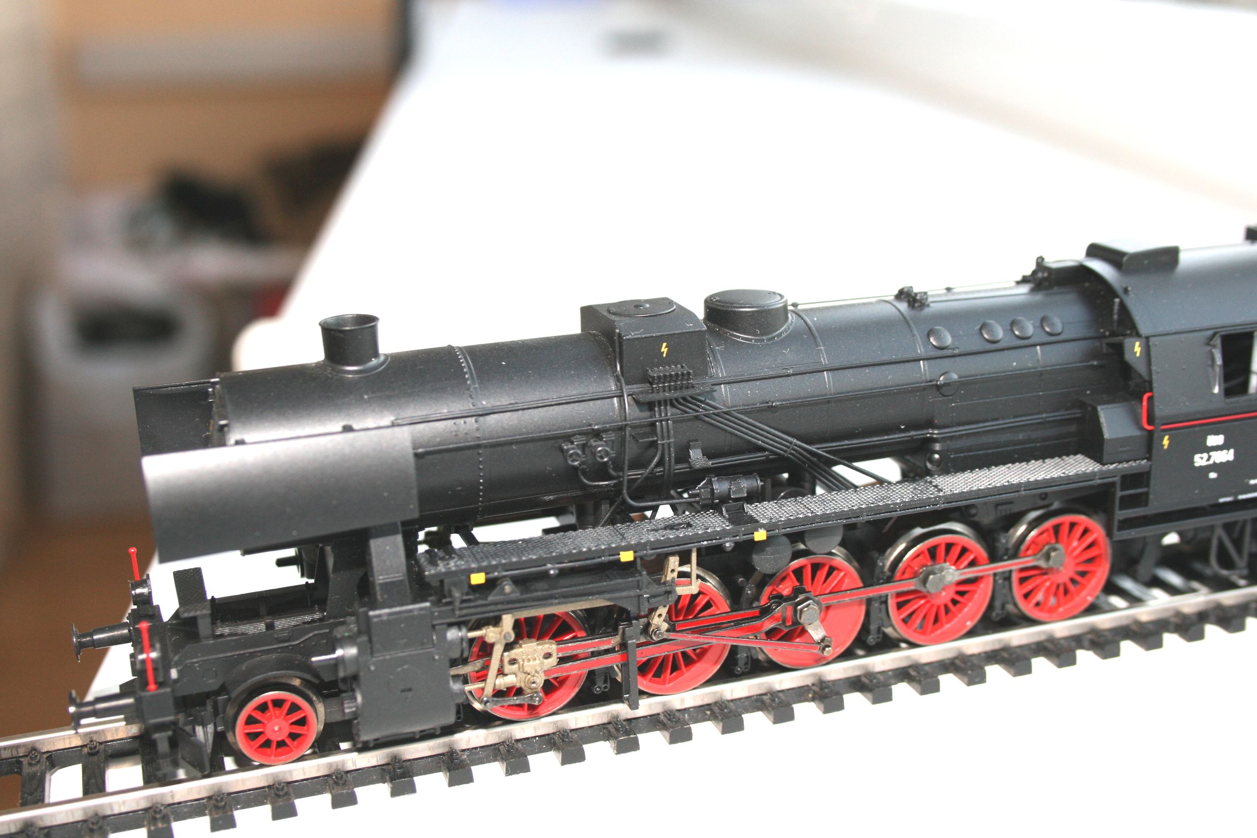 Касательно моделей. У меня есть две модели паровоза серии 52. Одна производства Гютцольд, вторая - Роко. Фирма Гютцольд выпускала 52-е различных исполнений (с утеплением и без оного) и с разными тендерами (рамным К4Т30 и ванным К2'2'T30). Модель появилась раньше роковской и поэтому на ней нет ещё некоторых вещей, которые впоследствии стали обычными, однако для своего времени была отличной. Мой паровоз имеет рамный тендер и на нём отсутствует утепление. Поручни, трубы песочницы и некоторые трубопроводы сделаны накладными. Он однажды принимал участие в покатушках и показал себя вполне рабочей моделью - с хорошими ходовыми качествами и тихой. Паровоз фирмы Роко - в окраске Австрийских железных дорог, с изменениями, типичными для ОВВ (например, генератор расположен не на дымовой коробке возле трубы, а на площадке вдоль котла с левой стороны). Конструкция более поздняя и поэтому более деталированная. Этот паровоз имеет типичный для него ванный тендер. Добавлю ещё, что порядковые номера паровозов свидетельствуют о том, что "немец" построен в Берлине на BMAG, а "австрияк" - в Вене на WLF. P.S. Забыл добавить - у Гютцольдовского рама брусковая, а у Роковского - листовая.