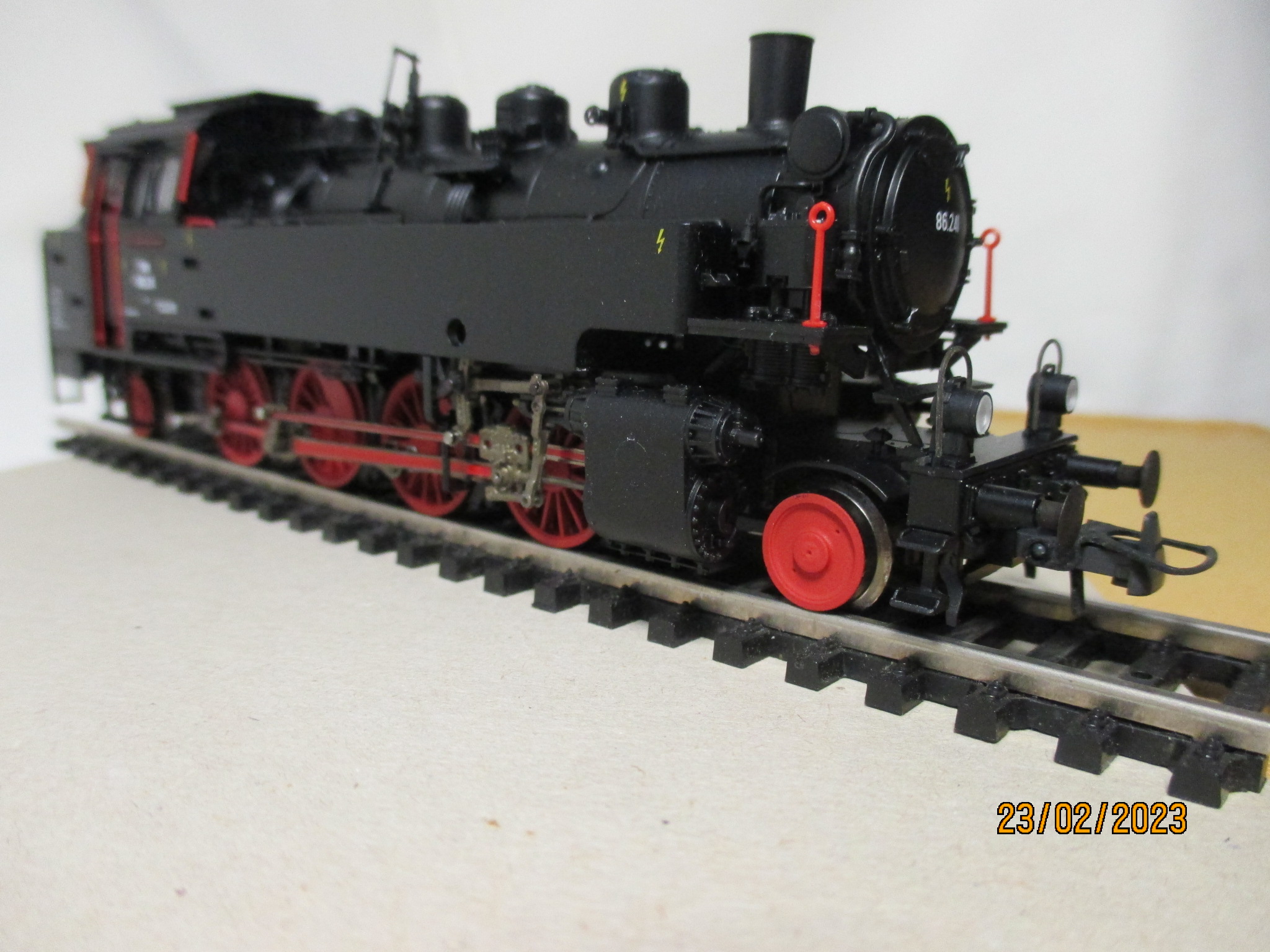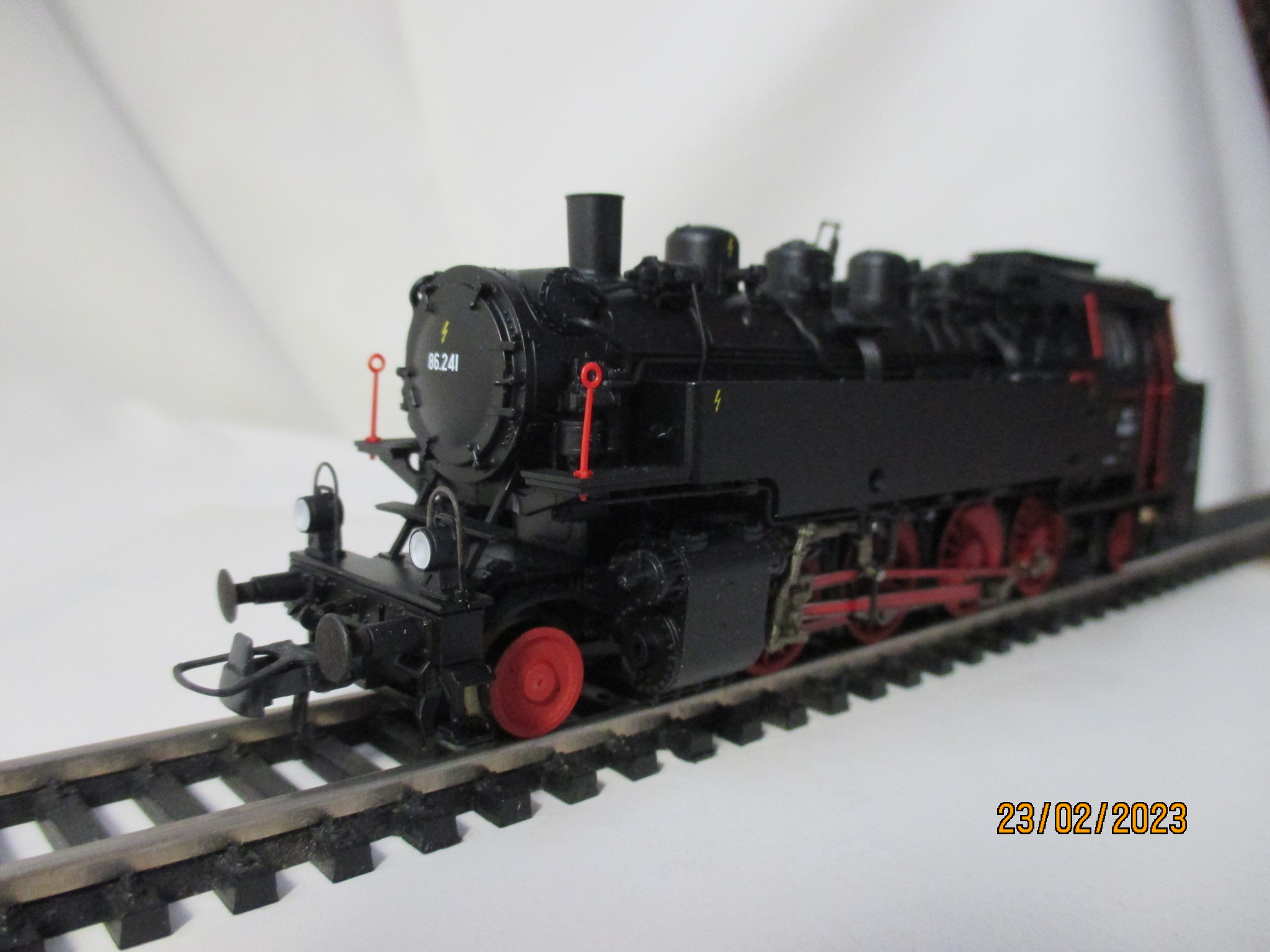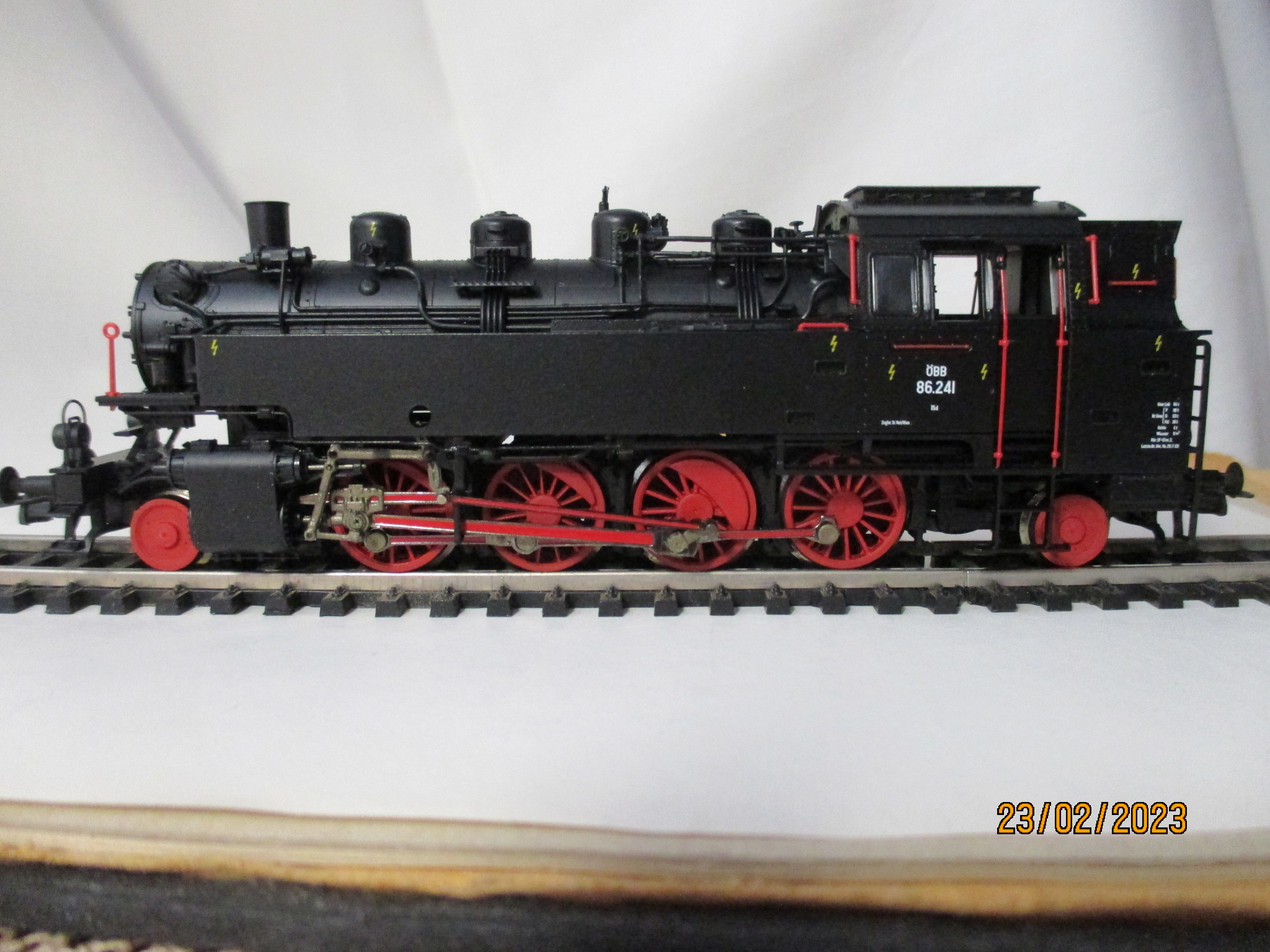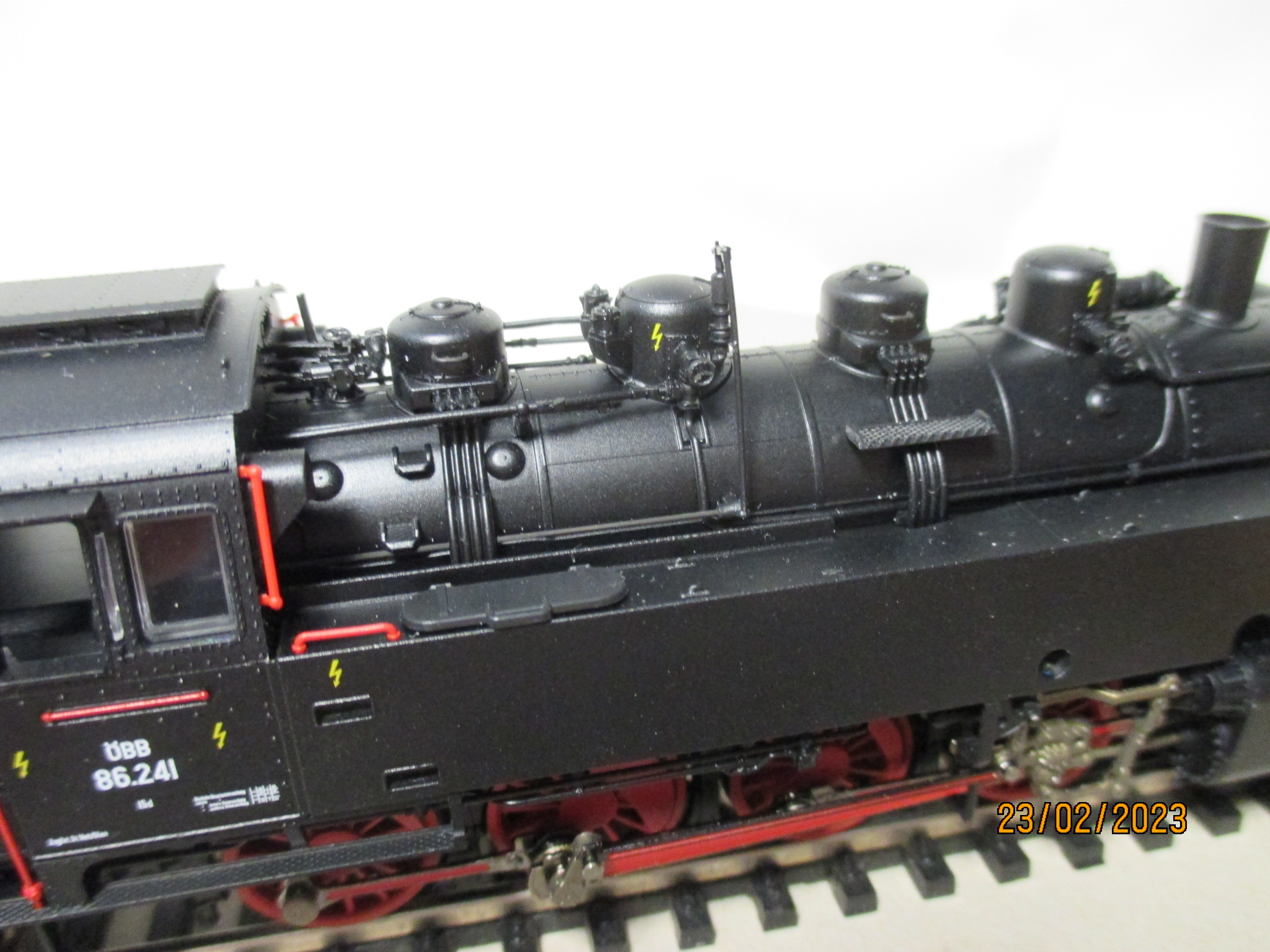 Вище (десь на другій сторінці) був показаний паровоз серії 86 DB від виробника Fleischmann. Як доповнення хочу представити модель такого самого локомотива, тільки від Roco і в версії австрійських залізниць. Відмінності від моделі Фляйшманн: зварний водяний бак, який ще й трохи зміненої форми (нижня частина подовжена вперед так, що закриває частину ПРМ, для обслуговування якого залишен отвір), передній і задній бігунки - катані (без спиць), і, звичайно, фарбування згідно стандартів ОВВ. Оскільки прототип описаний вище, то тут - лише картинки.