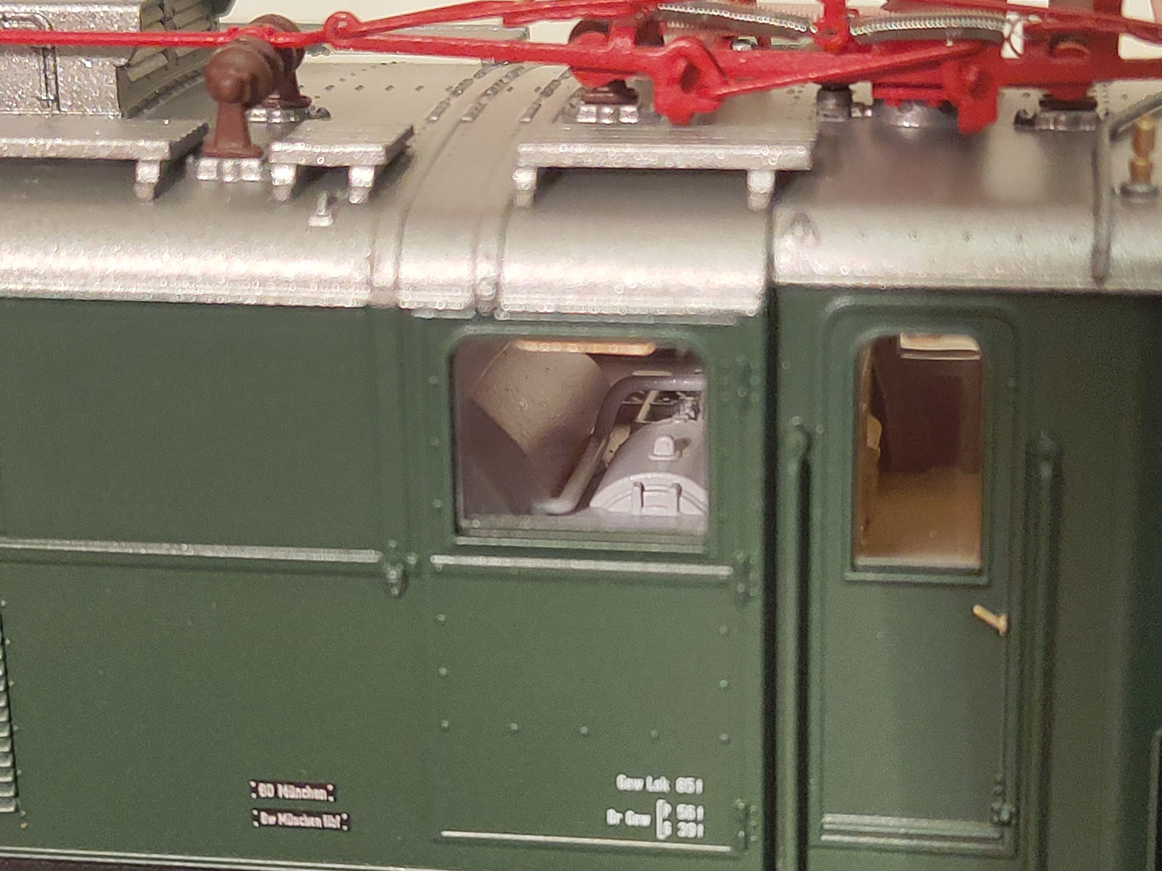 Ну и несколько слов о модели. Сначала о очевидных плюсах, выражающихся в весьма качественно исполненном, изобилующем деталями изделии, положительные впечатления от которого усиливаются ещё и тем, что до Liliput прототипы первой серии (Е 44 102-105), не ваял в типоразмере Н0 никто из производителей, собственно, как и доныне (если ошибаюсь, поправьте). Но есть и некоторые минусы, как например несоответствующие эпохе токоприёмники. Liliput позиционировал свою модель, как относяющуюся к "эпохе III", но пантографы на этом Е 44 504, уже со сдвоенной контактной лыжей, хотя замена на пантографы такого типа проводилась только с 1975 года. Один немецкий форум поведал, что производитель вскорости эту ошибку осознал и пофиксил, а всем купившим тогда модели "раннего выпуска" с неправильными пантографами, дилеры даже предлагали их заменить (кстати, в варианте DRG, арт. 132540, они хоть и с одной лыжей, но почему-то красного цвета и исправленных вариантов я никогда не видел).