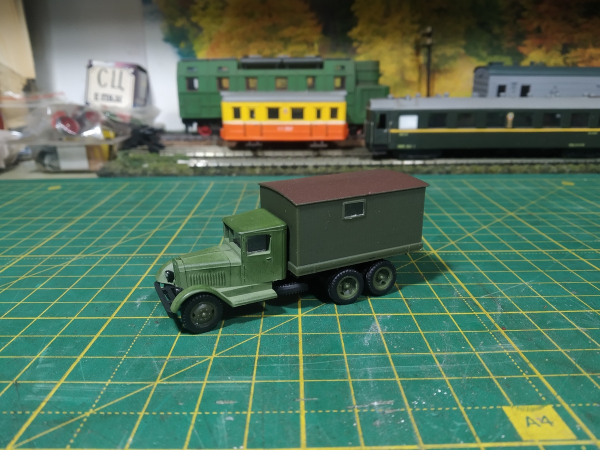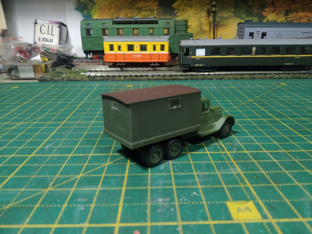 В моїх заначках були деталі від ЗиС-5 "КОМО" і треба було зовсім трошки часу, щоб все це зібрати до купи і отримати в колекцію модель ЗиС-6 кунг. Кабіну не фарбував. Залишив в кольорі, який колись обрав кум. Невідомо, яка в нього була задумка, але нехай так і залишається... Нагадаю, що на самих перших моделях знімався капот и було встановлено імітацію двигуна.
