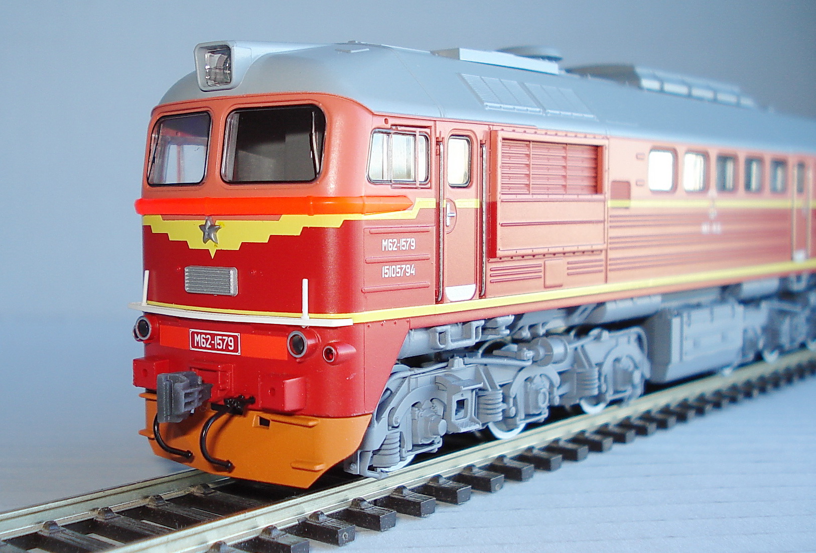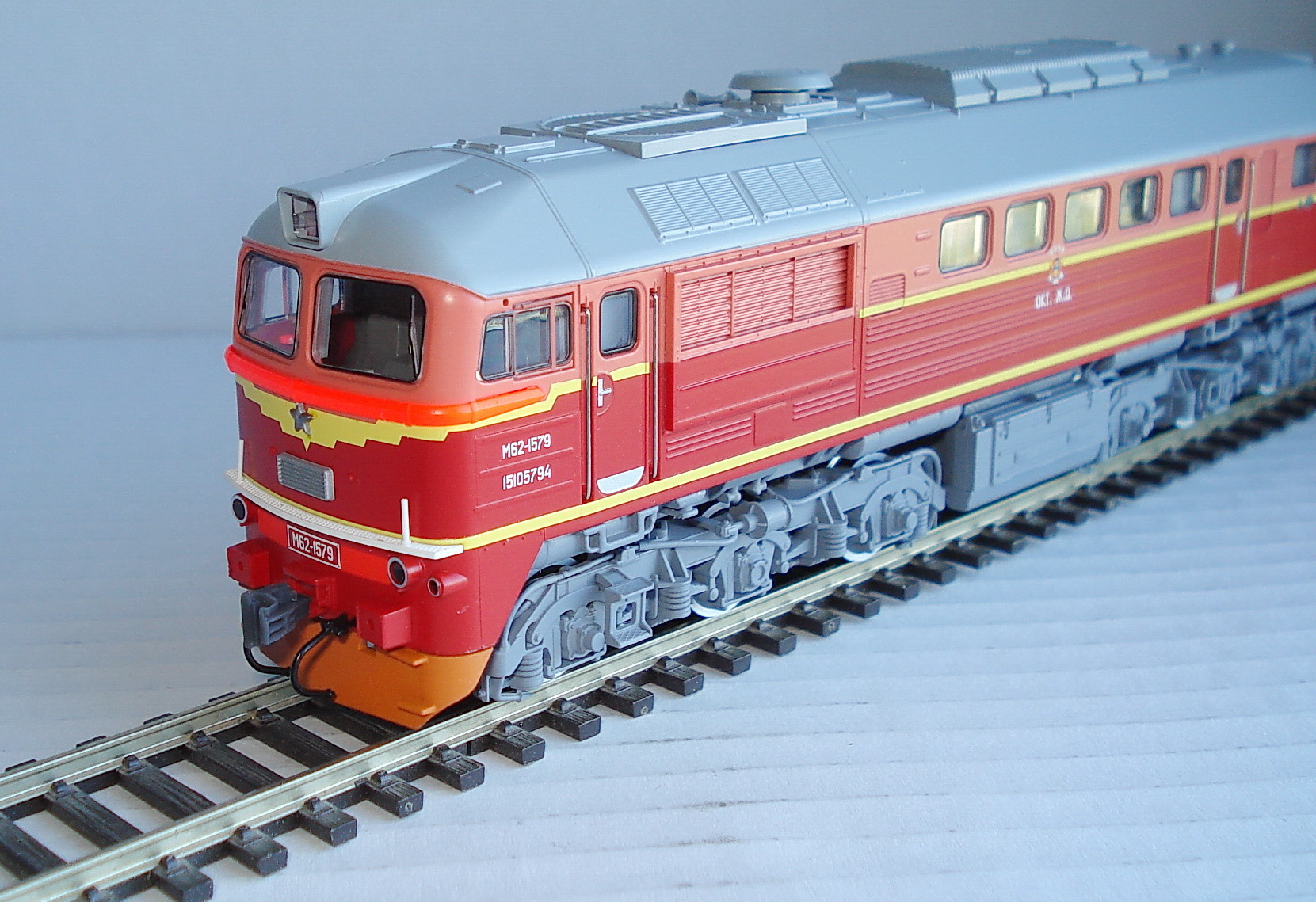 Да,всё верно,у всех тепловозов ходовку и раму с поручнями покрасил,а у RS-ки телеги поменяли белую полосу приклеил .Нравится мне серебряная ходовая,есть такая слабость до такого цвета.