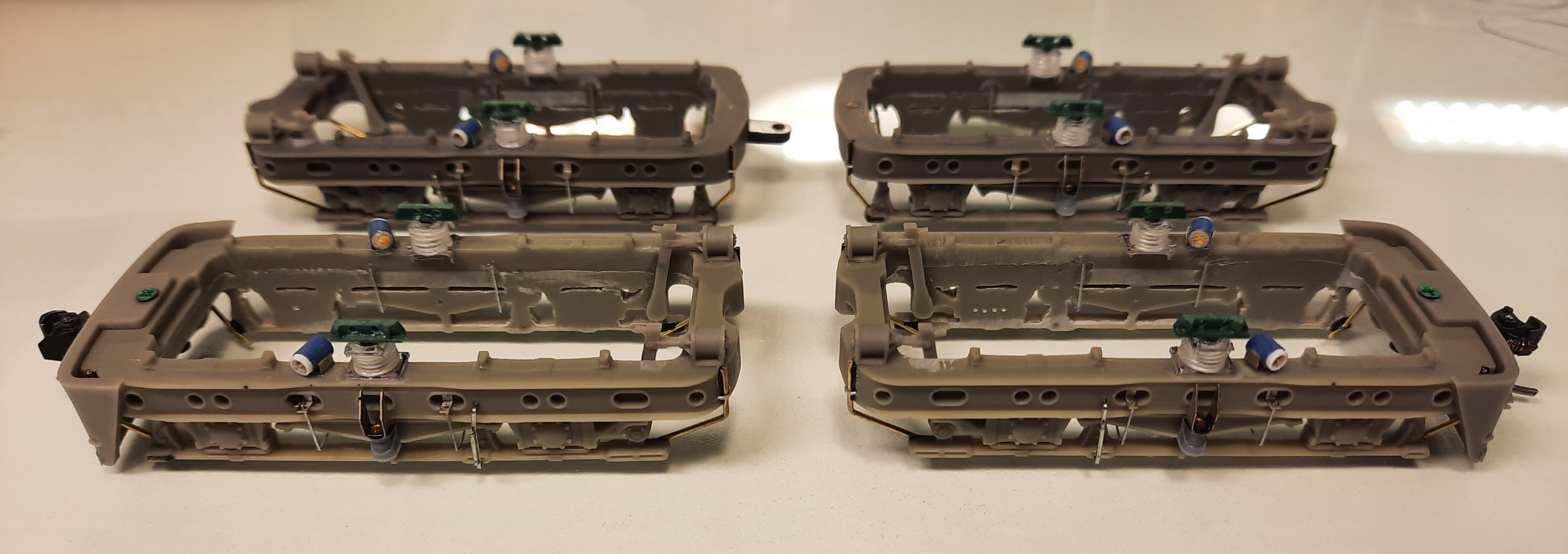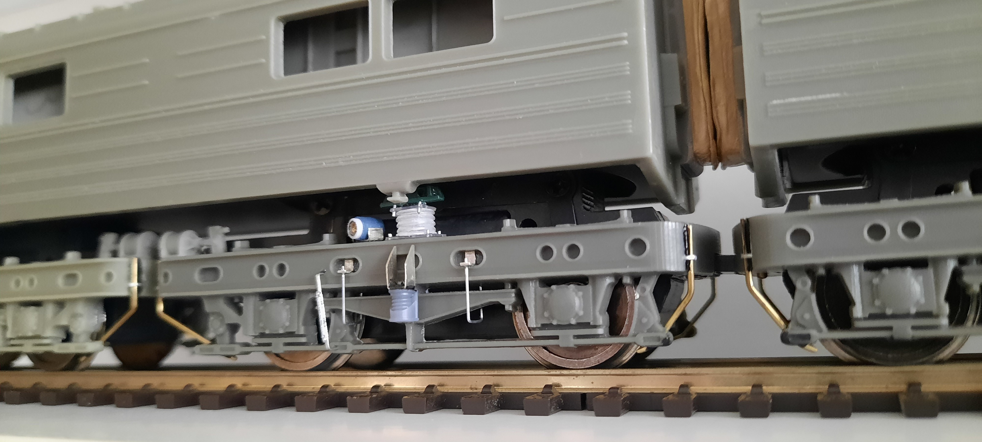 Из подручного шлака и отходов сделал убогие имитации боковых опор кузова на телеги, потому как просвет между тележками и кузовом огромен, надо чем-то заполнять...
