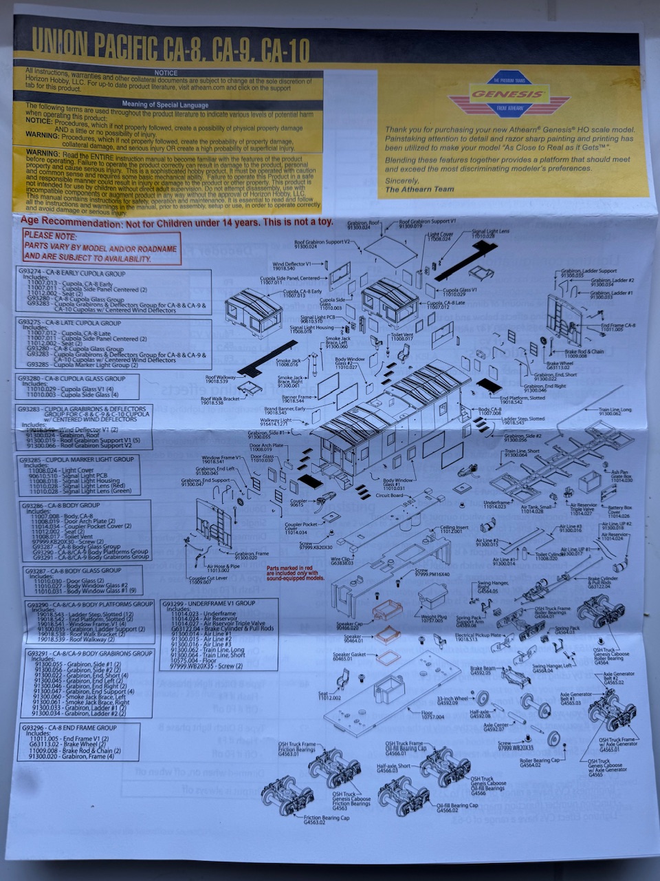 Genesis це топова лінійка в продуктовій палітрі бренду Athearn: металеві накладні, металеві решітки та висока якість пластику роблять ці вироби поза конкуренцією серед інших виробників. На моделі встановлені розсувні вікна в куполі кабузу а також наявність декоративних шлангів гальмівної магістралі, букси обертаються разом з колесами та мають незалежний токозʼєм на кожну колісну пару, на платі декодеру звісно присутній конденсатор для стабільного світіння навіть при втраті контакту
