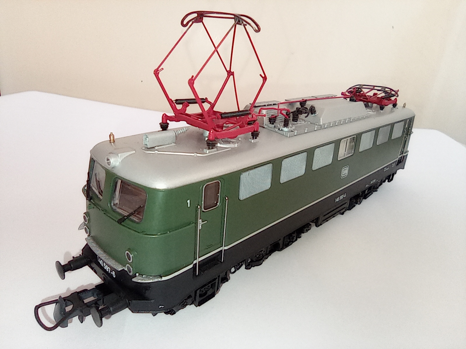 Интересная особенность моей модели заключается в том, что этот электровоз 4-й эпохи, но он уже имеет «кекс» DB в красном цвете, присущем для 5-й эпохи. Также представлю (из какого-то немецкого форума, для сравнения) первую модель BR150 (Е50), которую сделало ROCO с неправильньно большими по пропорции буферными фонарями.