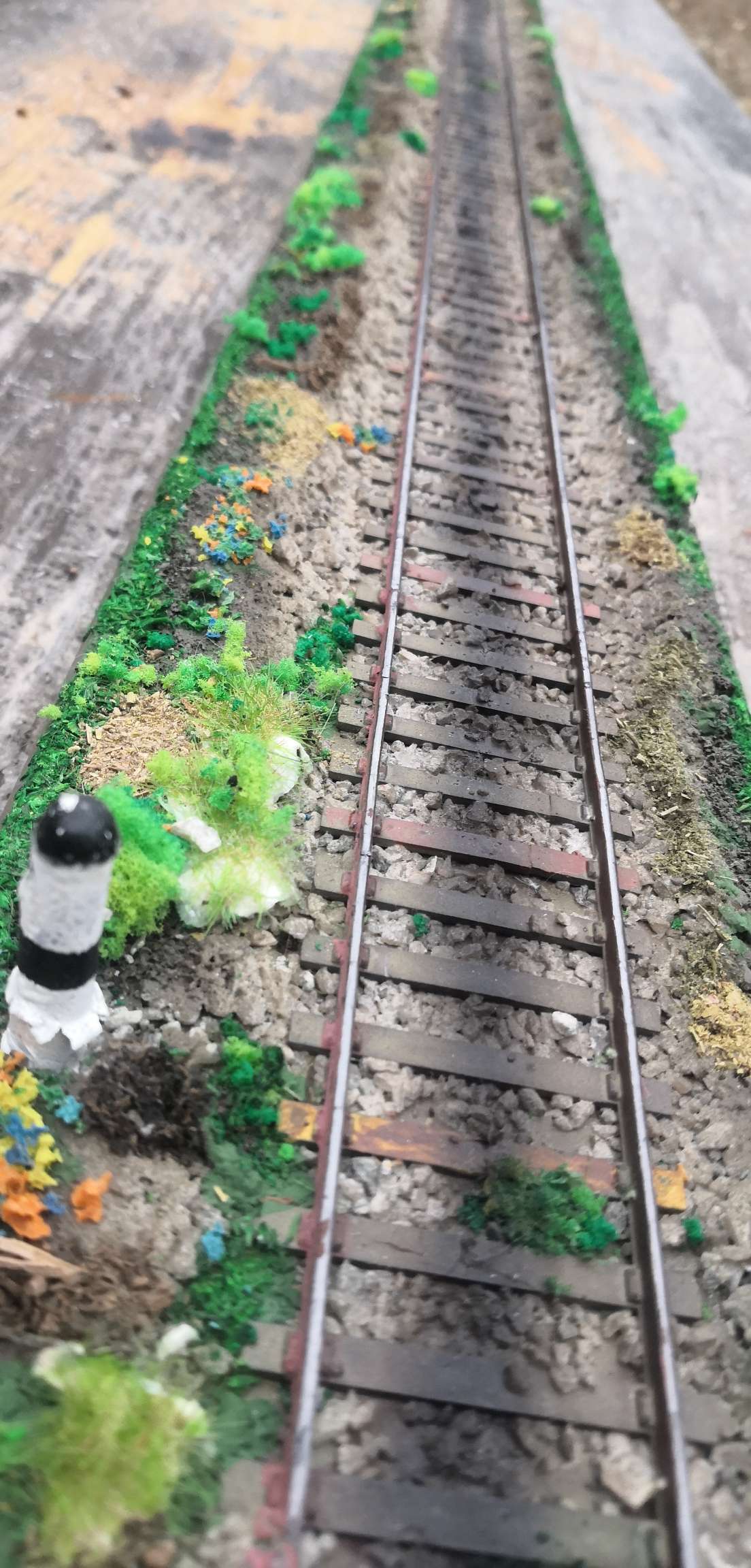 Це не знятий шлях. Це - можливість під'єднати рейки такого ж профілю та вписати в макет або діораму. Якщо рейки будуть на всю довжину, то не уникнути традиційних "переламів" на стиках, та, як наслідок, втрата контакту.