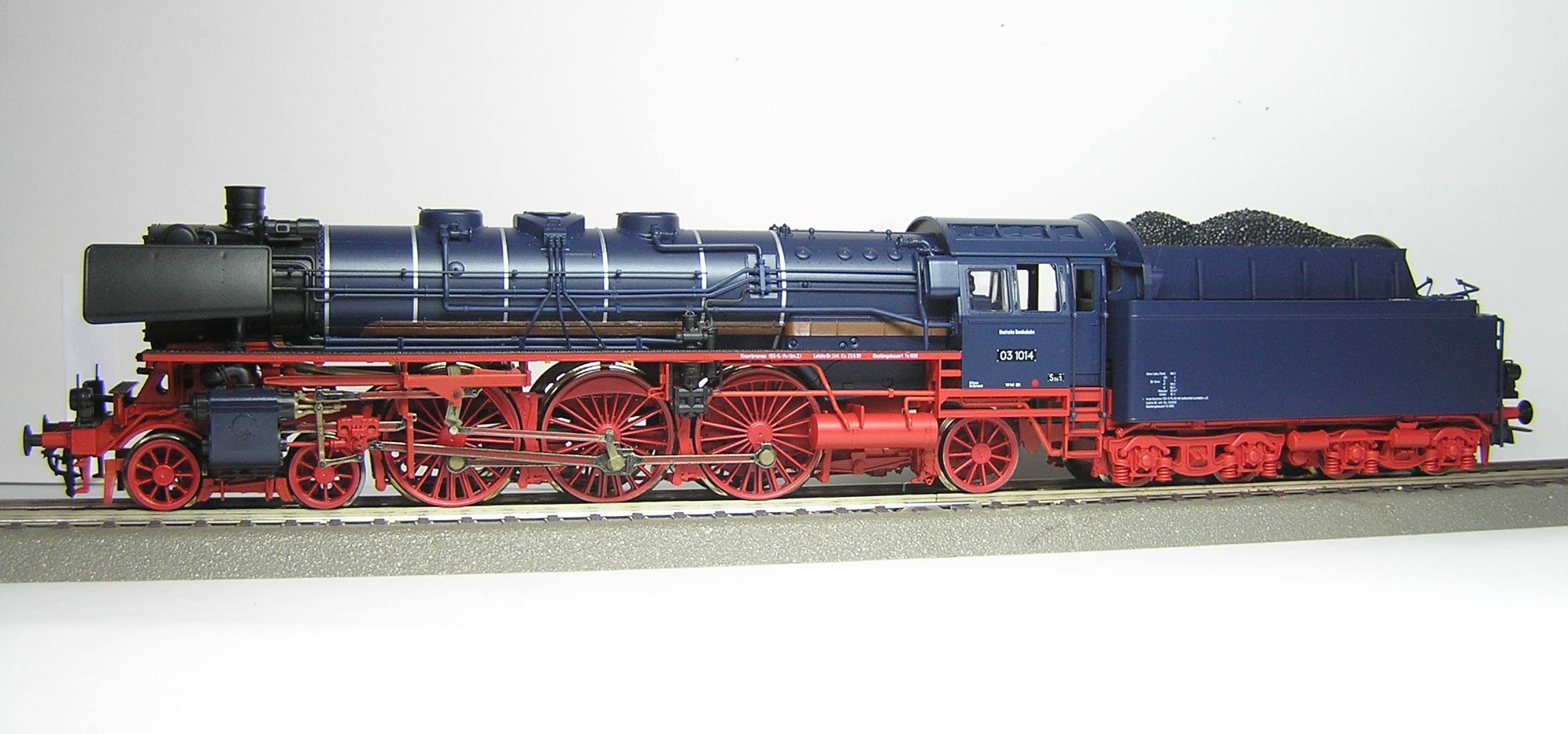 Сегодня, хочу представить, довольно таки, не совсем плохую модель немецкого паровоза BR 03 1014DB, art.63280 от Roco. Первый платиновый выпуск данной модели-2005 год.Длинна-247мм,вес-321гр. Видимо, в момент проектирования и создания этой модели, на фирму Roco снизошло озарение, с одновременным посещением музы. Получился маленький шедевр в серийных моделях-могут ведь, когда захотят.Модель смотрится очень хорошо, особенно с серебряным бандажом на синем цвете. Деталировка у модели просто великолепная.Помимо основного освещения , ещё установленно освещение под палубой, с каждой стороны, для освещения ходовой части.Очень оригинально выполнен токосъем.Модель полностью комплектная, находится в идеальном состоянии. Приобретал данную модель, для сравнения с Micro Metakit. Вместе смотрятся очень достойно, даже красиво.Приятного просмотра.