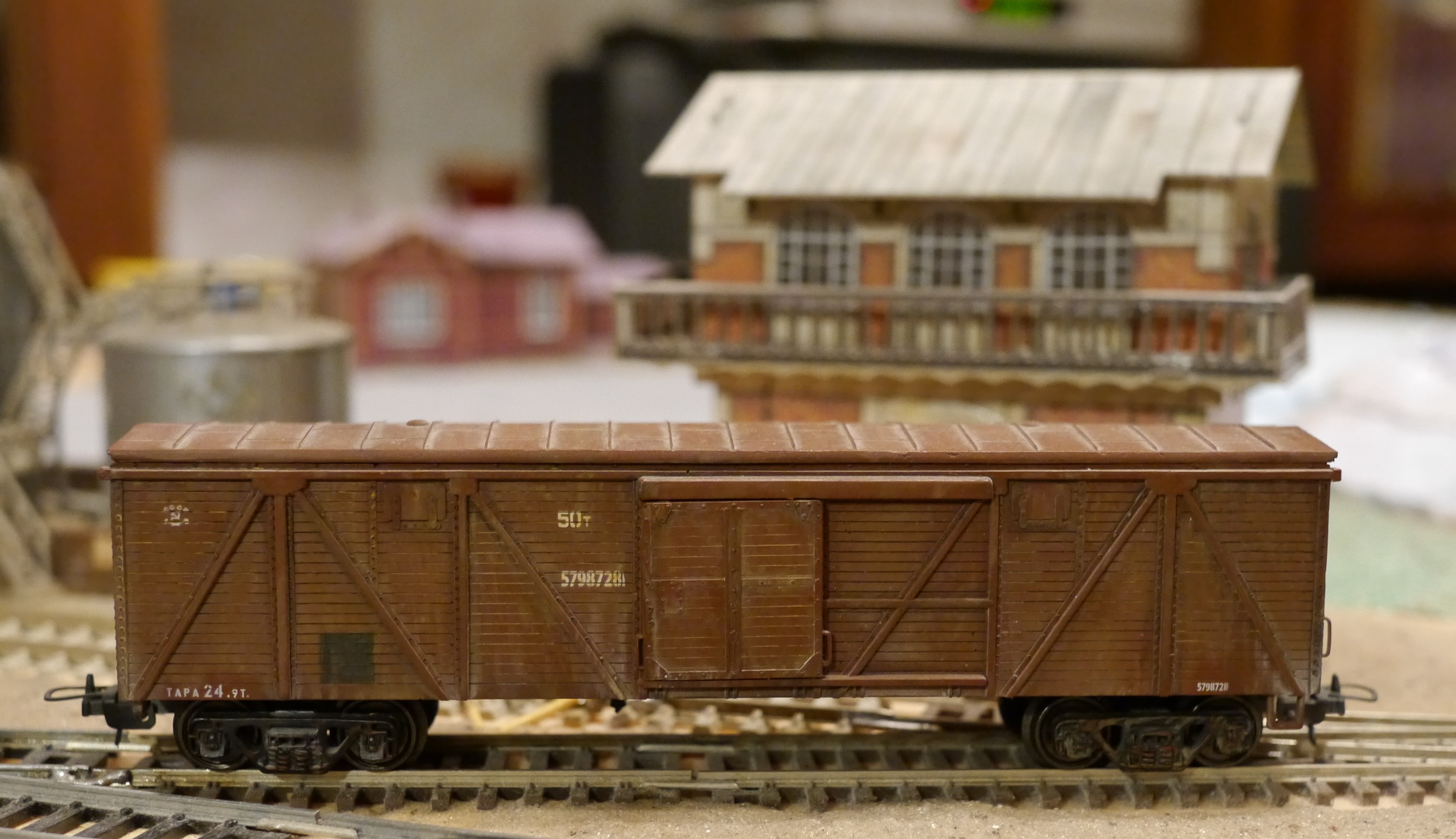 Прототип - очень распространенный на СЖД крытый вагон грузоподъемностью 50 тонн. Если смотреть старые фотографии грузовых поездов, почти наверняка вы его там увидите.