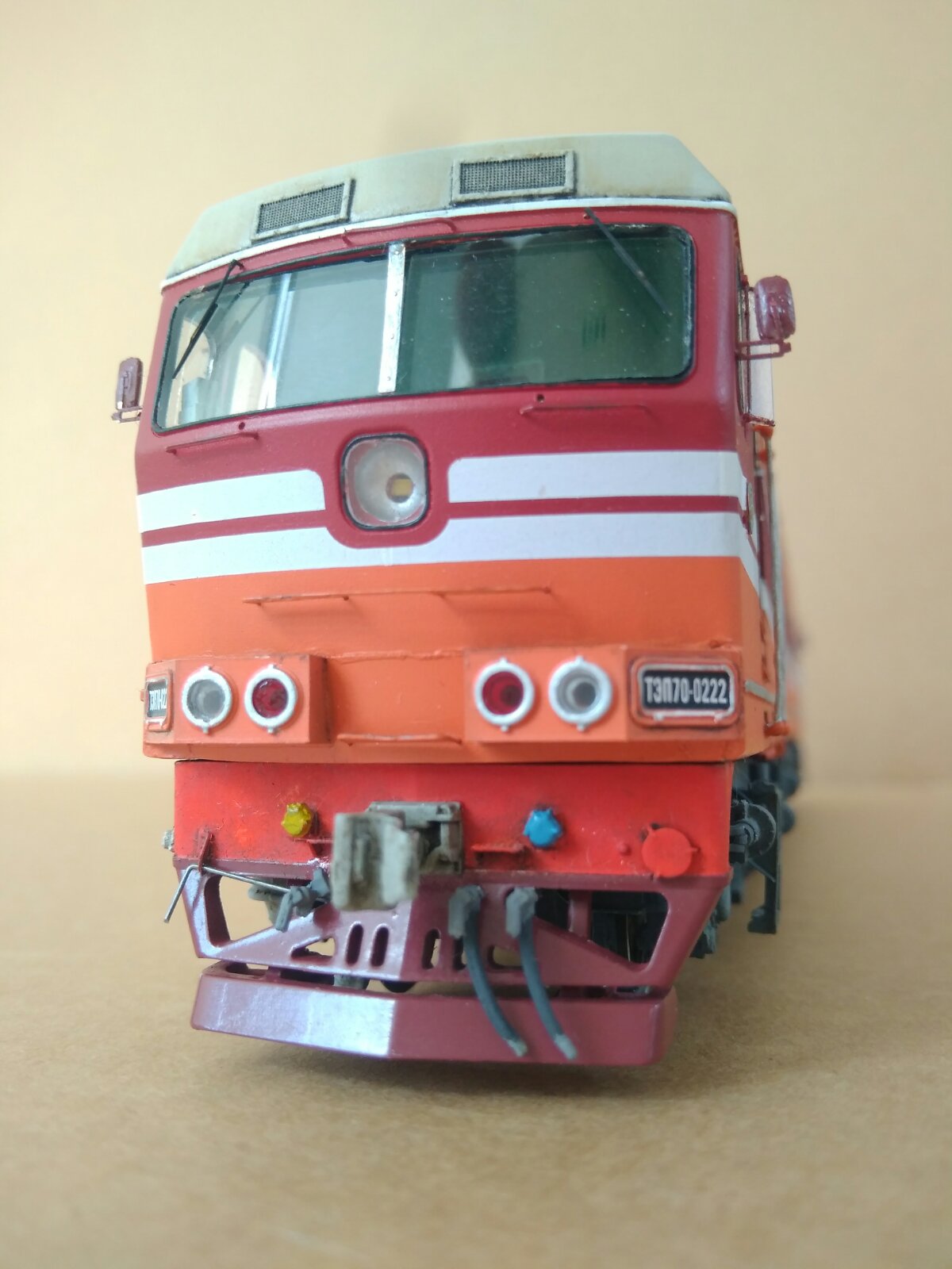 Декілька років тому робив 8 моделей тепловозів ТЕП60 і ТЕП70 з наборів RTM. Один з них - не дороблений до кінця (без візків, коліс, паливного бака та інтер'єру) - поїхав до однієї людини з форуму. На днях він все ж таки доробив його до кінця, і мені спокійно тепер))