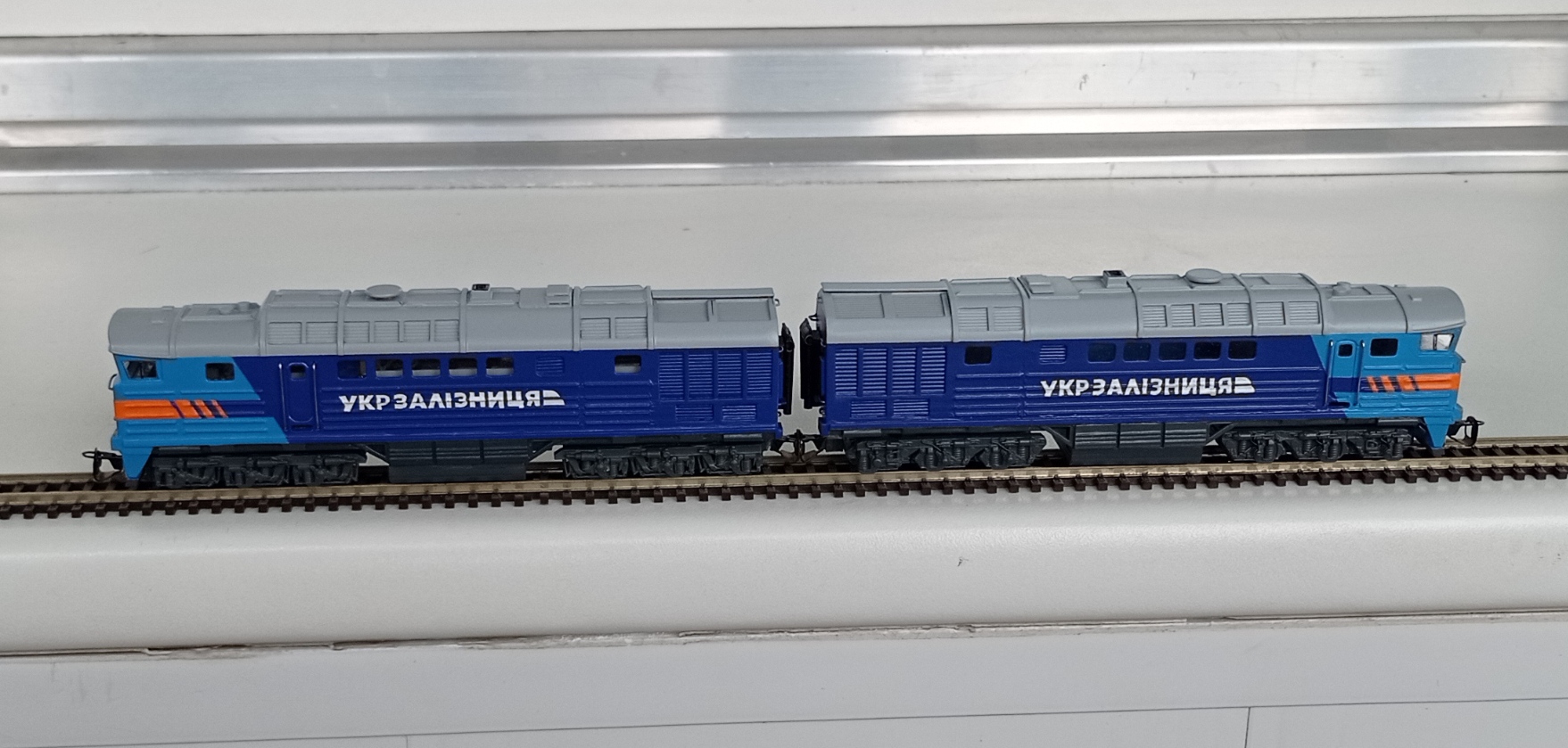 Появилась вторая (приводная) секция 2ТЭ116 в новой раскраске УЗ. В реальности в таком виде попадался мне только номер 823.