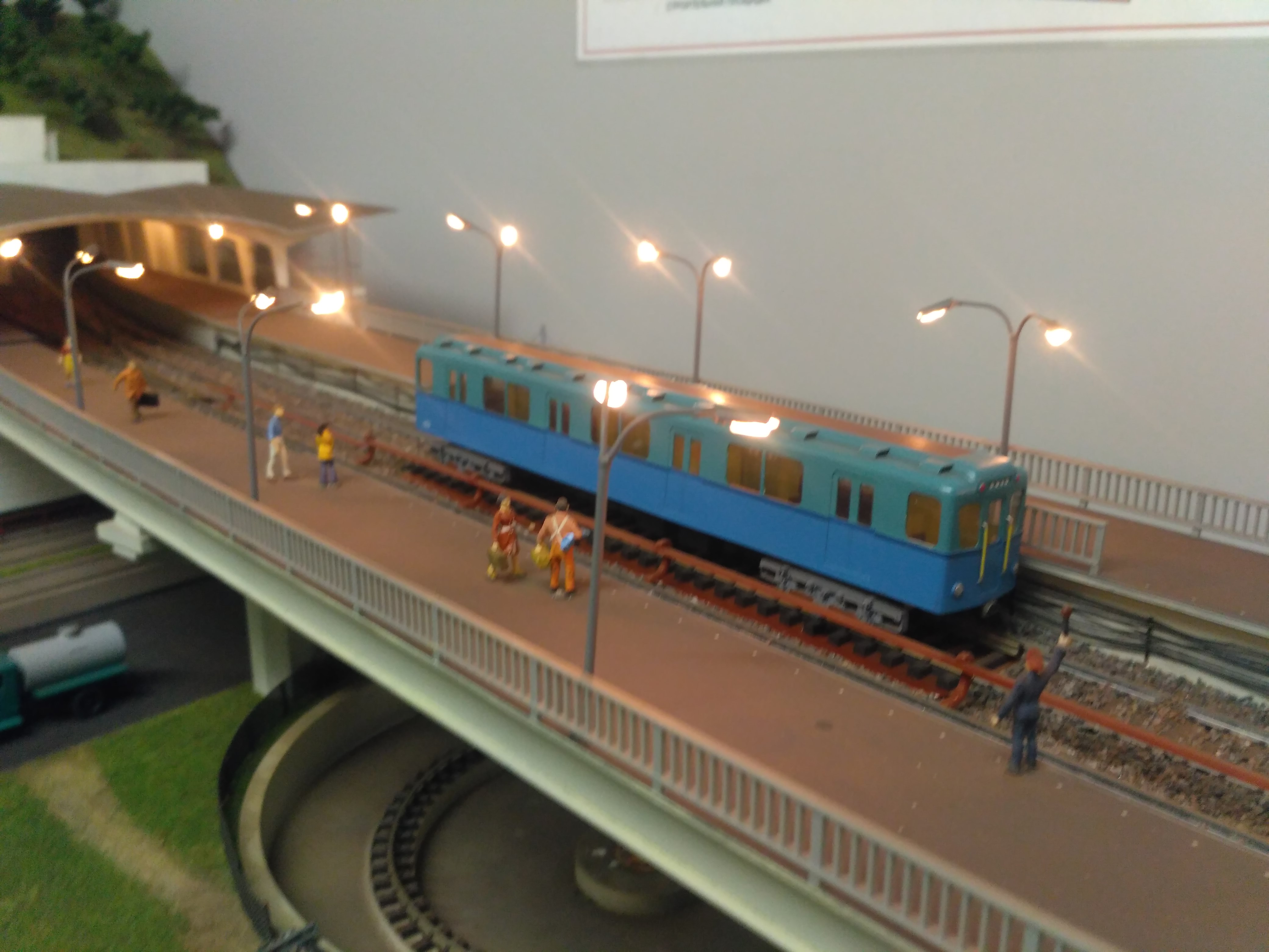 Макет строился в очень сжатые сроки ( не более 2-х месяцев) авторами Дмитрием Ревякиным и Сергеем Хоменко, и работает по сей день. На мою долю выпало изготовление самого метролифта с механизмом, вагонов метро типа "Д", эстакады моста с освещением. А по Диминой части- рельеф и архитектура.