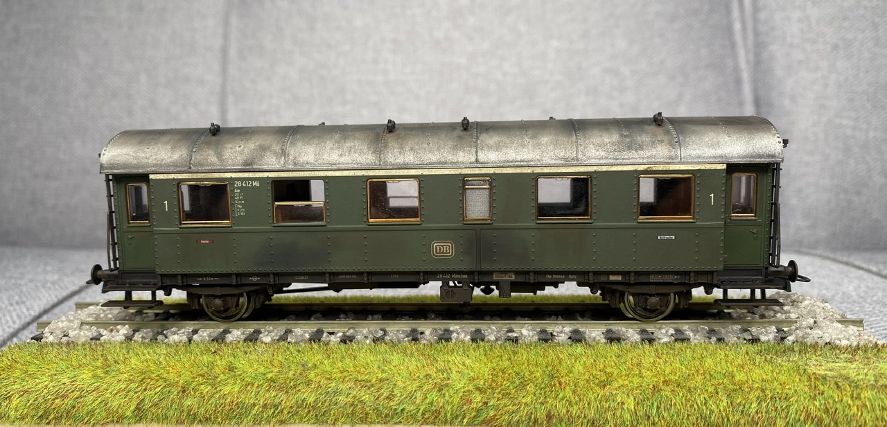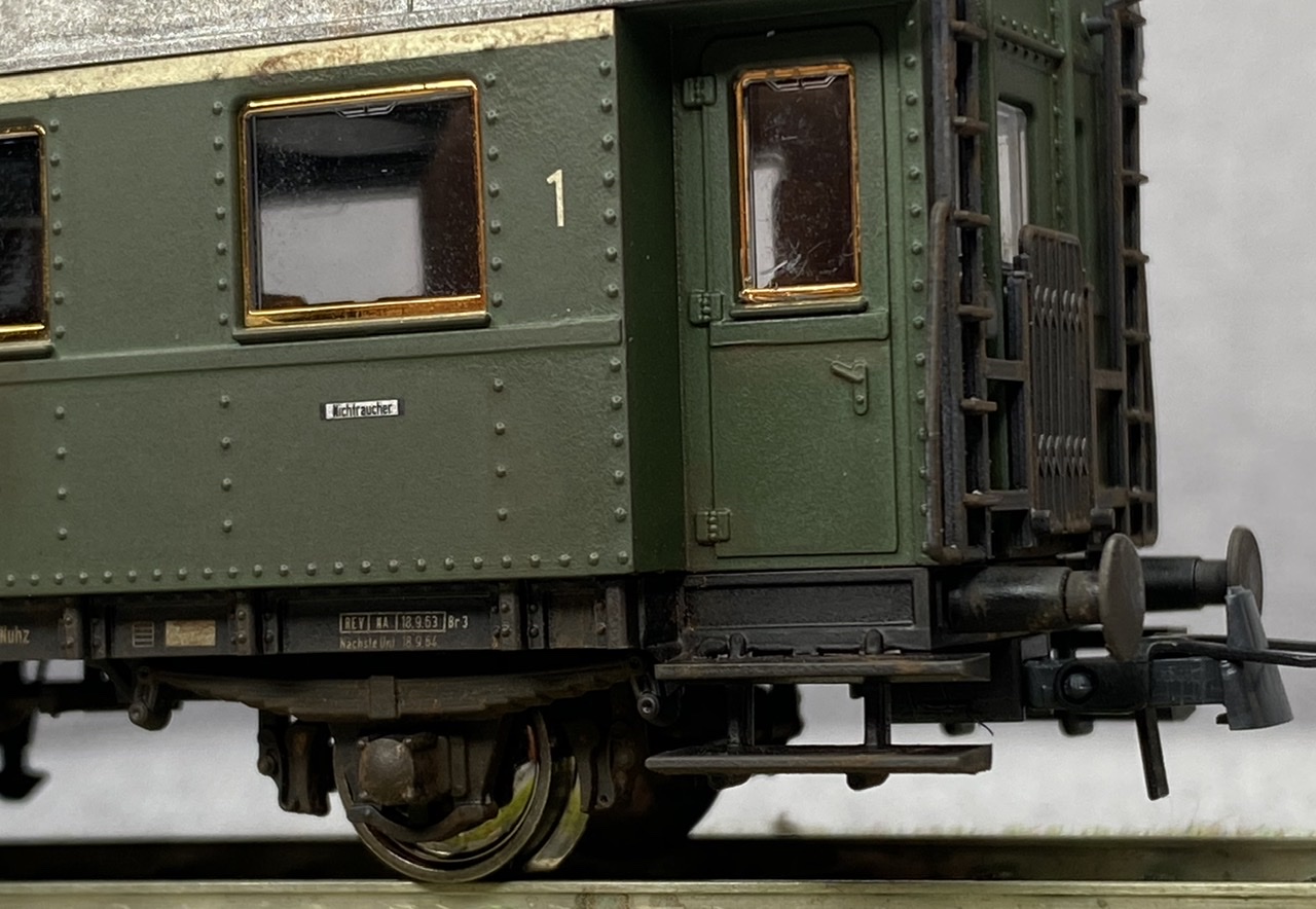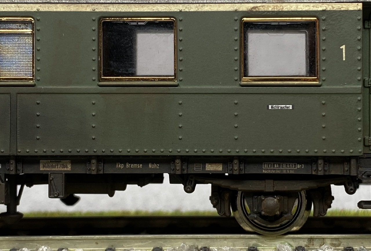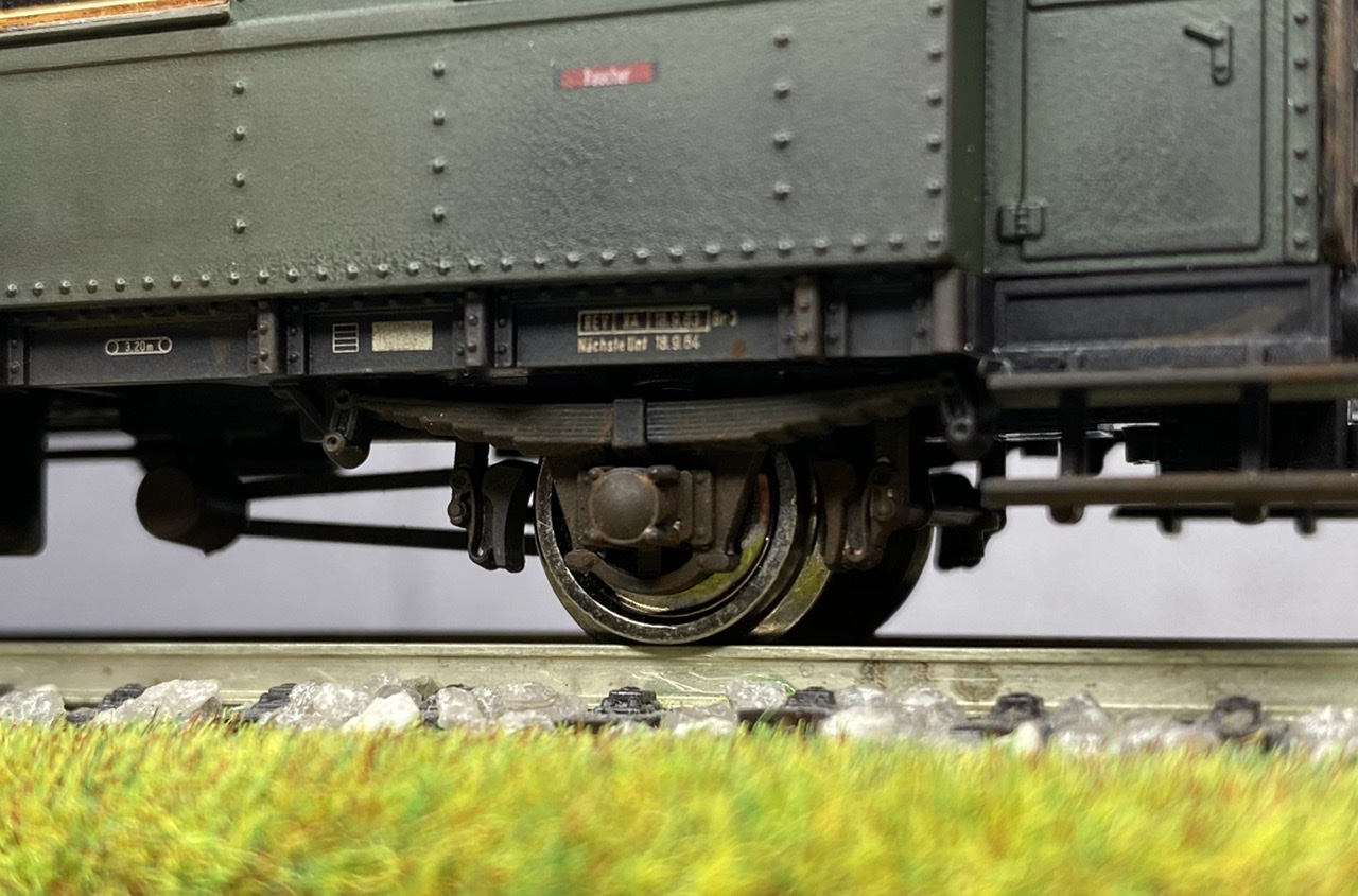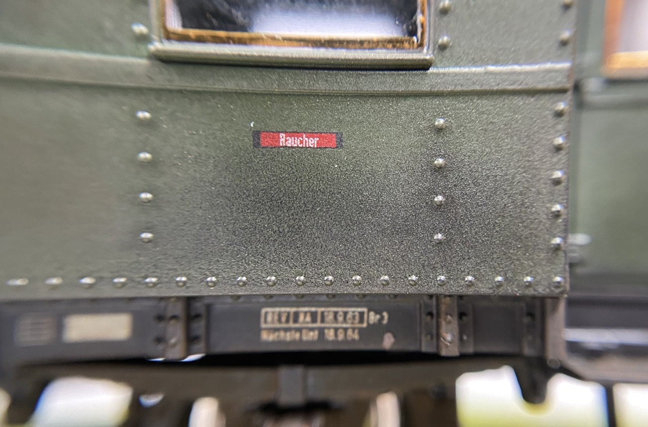 Нижня частина теж оброблена рудою тінню, нанесено лак, та пігмент імітацію іржі. Після лакування на корпус додана імітація забруднення та іржавих підтіків, рами вікон вирішив на чіпати зовсім, залишивши деякий «шарм» німецьких вагонів