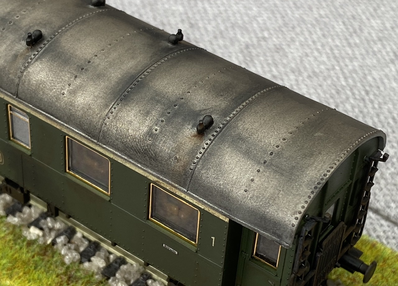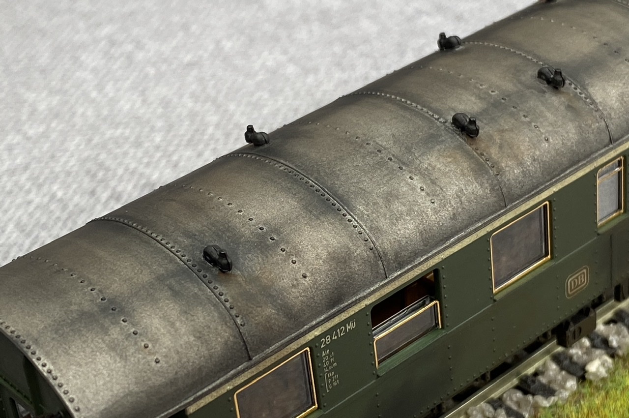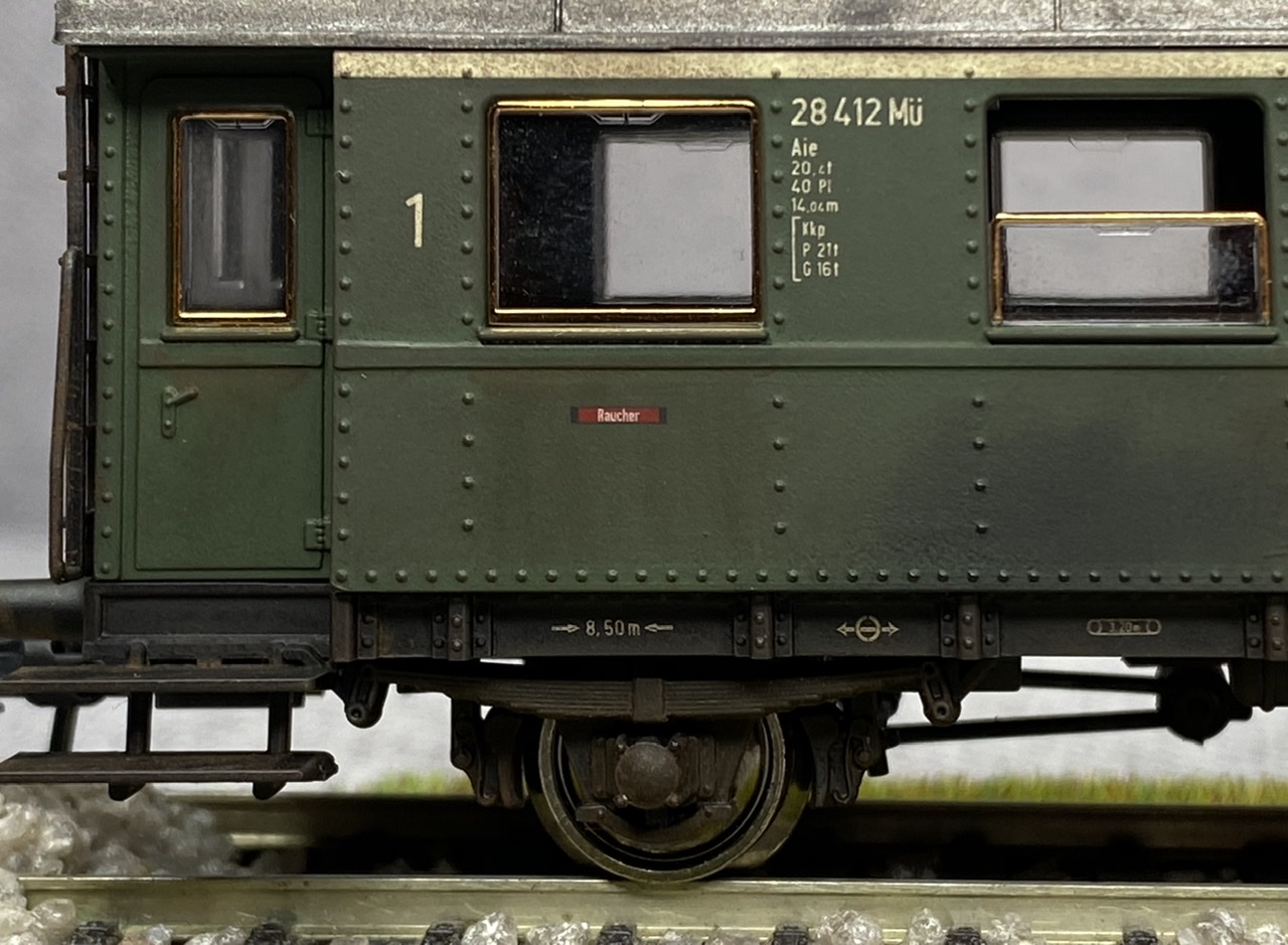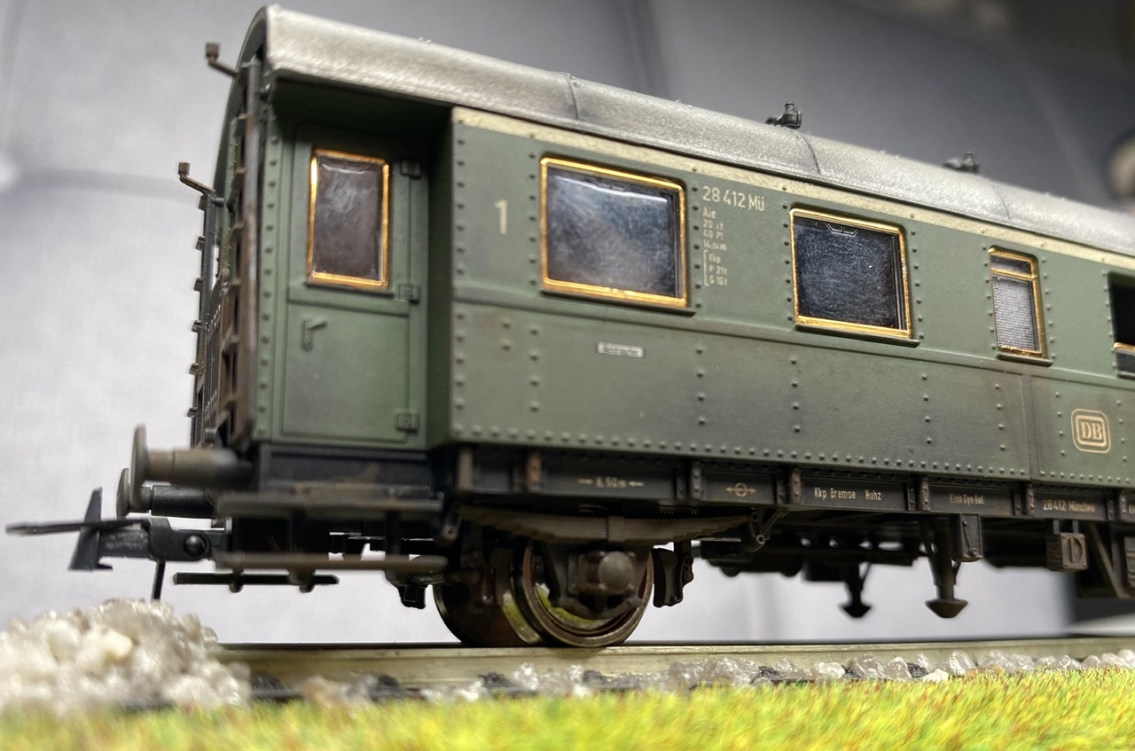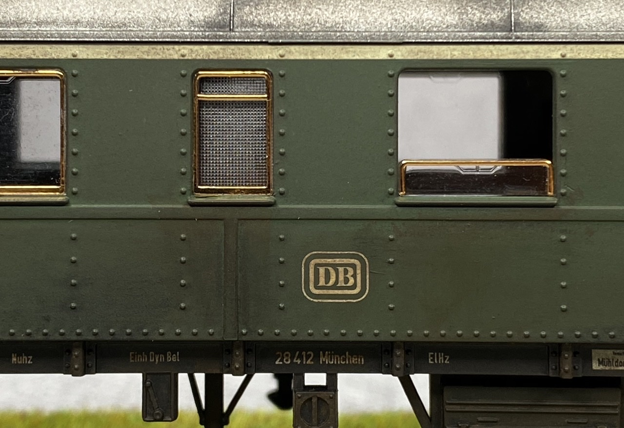 Нижня частина теж оброблена рудою тінню, нанесено лак, та пігмент імітацію іржі. Після лакування на корпус додана імітація забруднення та іржавих підтіків, рами вікон вирішив на чіпати зовсім, залишивши деякий «шарм» німецьких вагонів