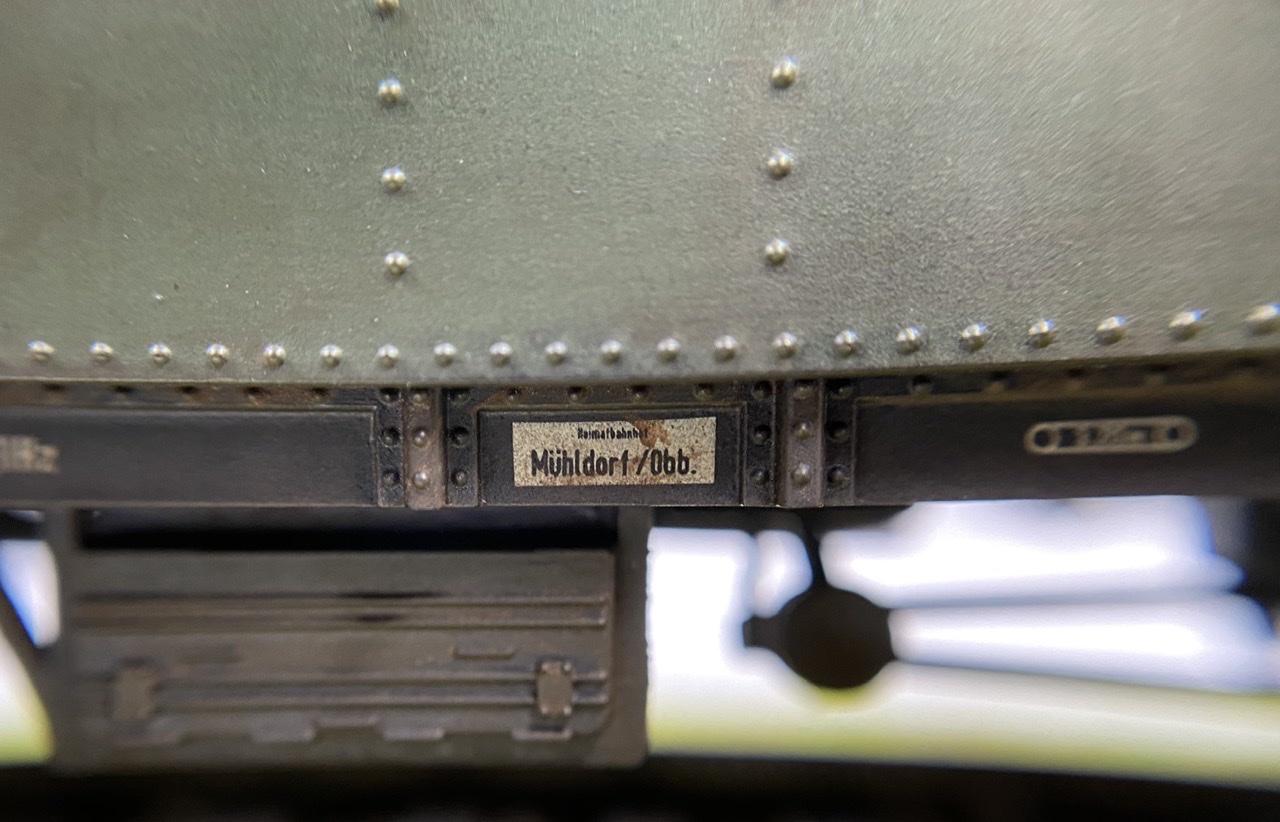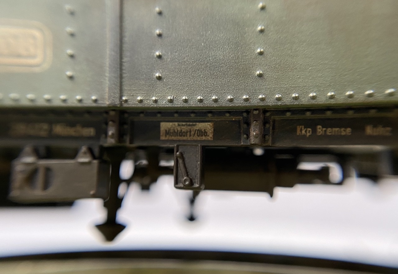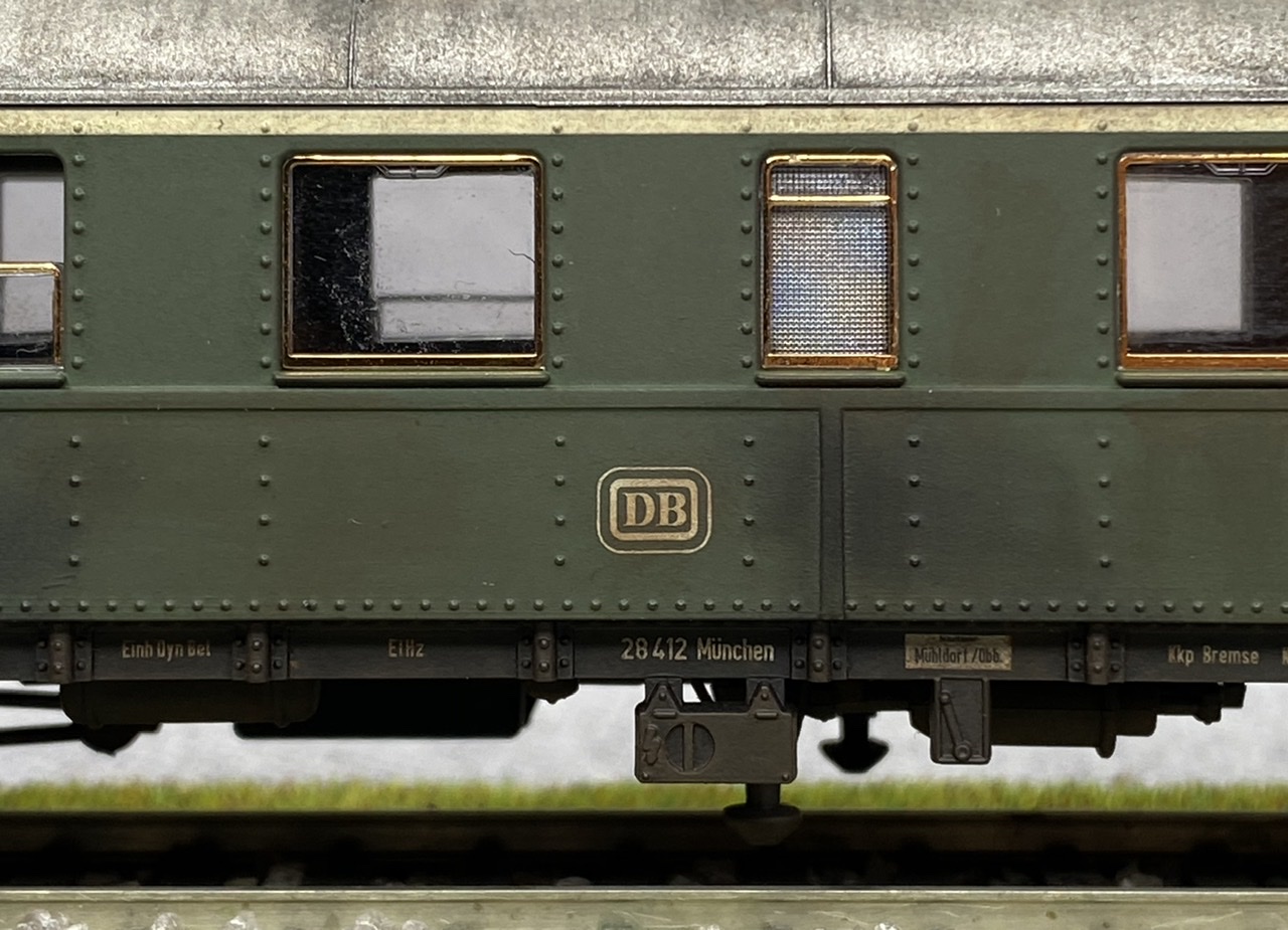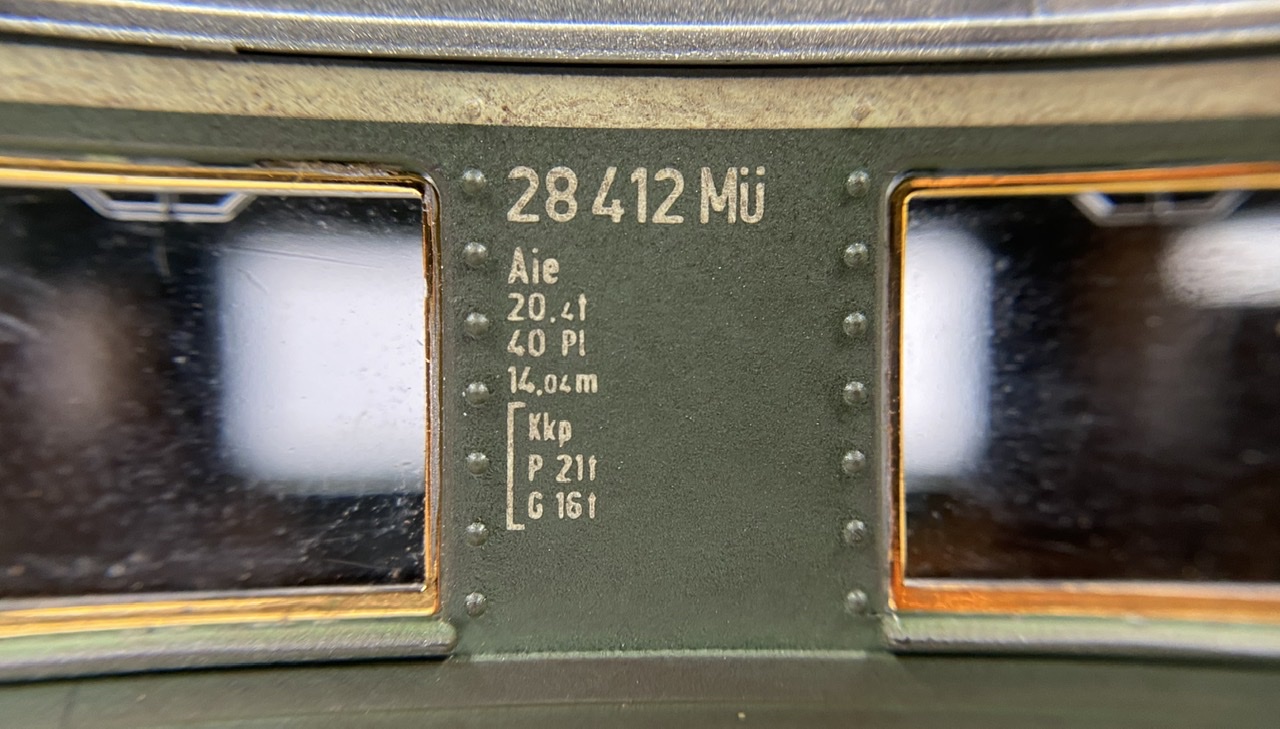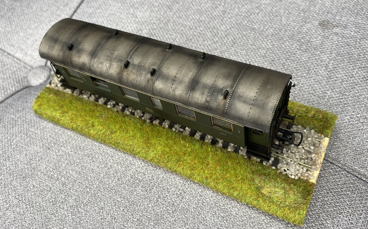 Нижня частина теж оброблена рудою тінню, нанесено лак, та пігмент імітацію іржі. Після лакування на корпус додана імітація забруднення та іржавих підтіків, рами вікон вирішив на чіпати зовсім, залишивши деякий «шарм» німецьких вагонів