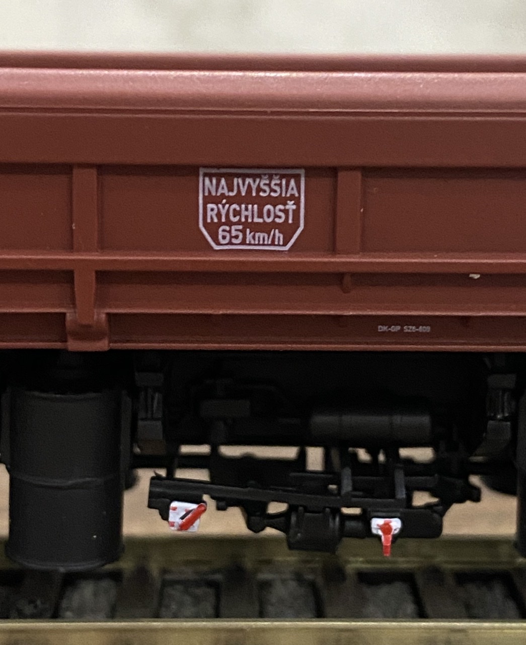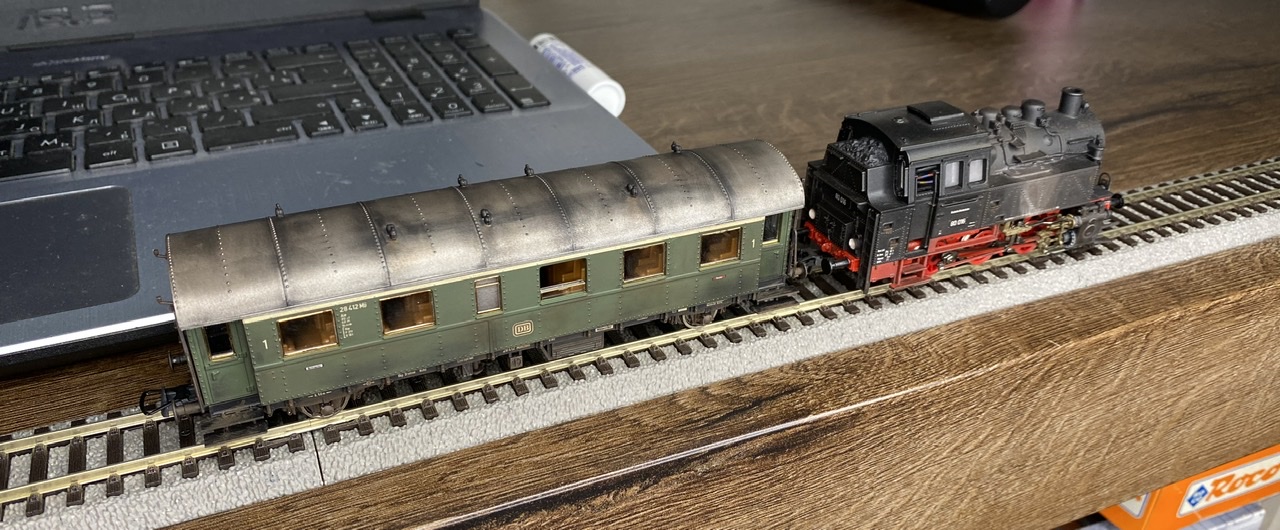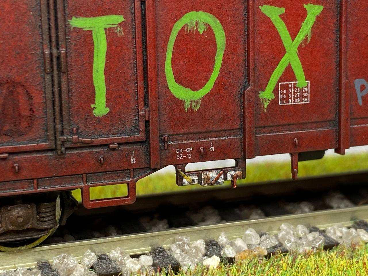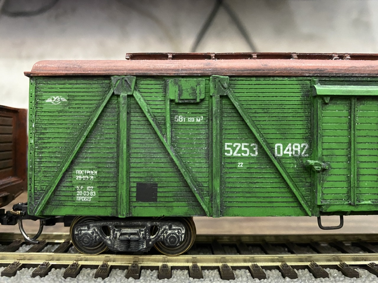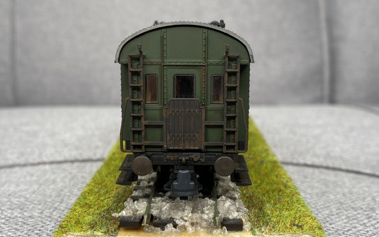 Нижня частина теж оброблена рудою тінню, нанесено лак, та пігмент імітацію іржі. Після лакування на корпус додана імітація забруднення та іржавих підтіків, рами вікон вирішив на чіпати зовсім, залишивши деякий «шарм» німецьких вагонів