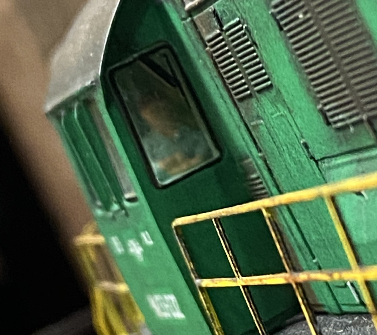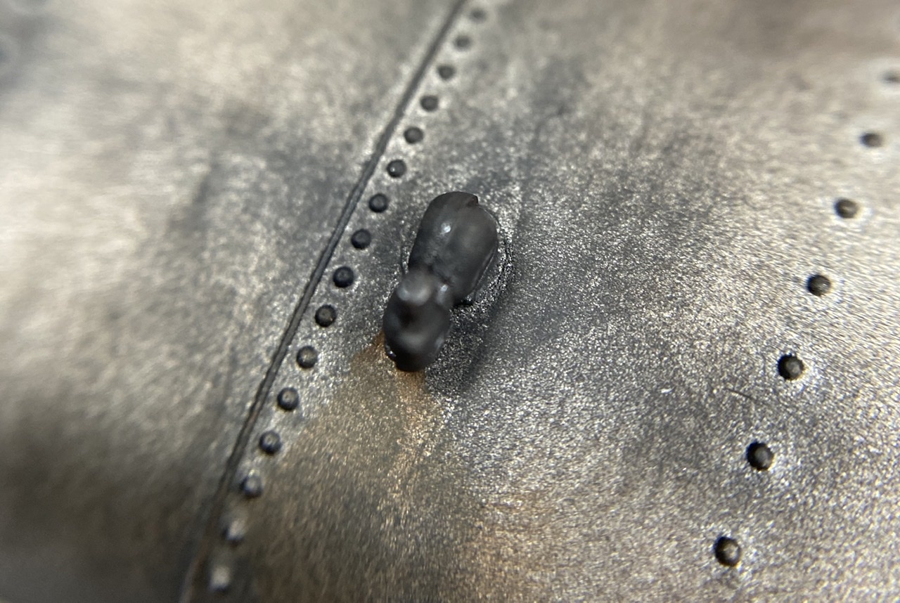 Дах оброблено чорними тінями для очей, оброблено лаком, згодом додано пігмент valejo що імітує підтіки іржі