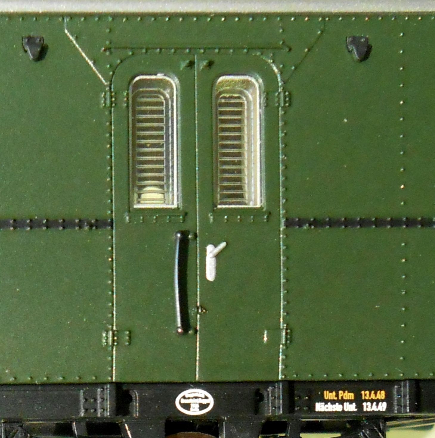 а средняя ось с поперечным смещением.Поэтому данный вагон способен проехать R1. Надписи и шрифты соответствуют ГДР,послевоенной эпохе 3А .Также это первый