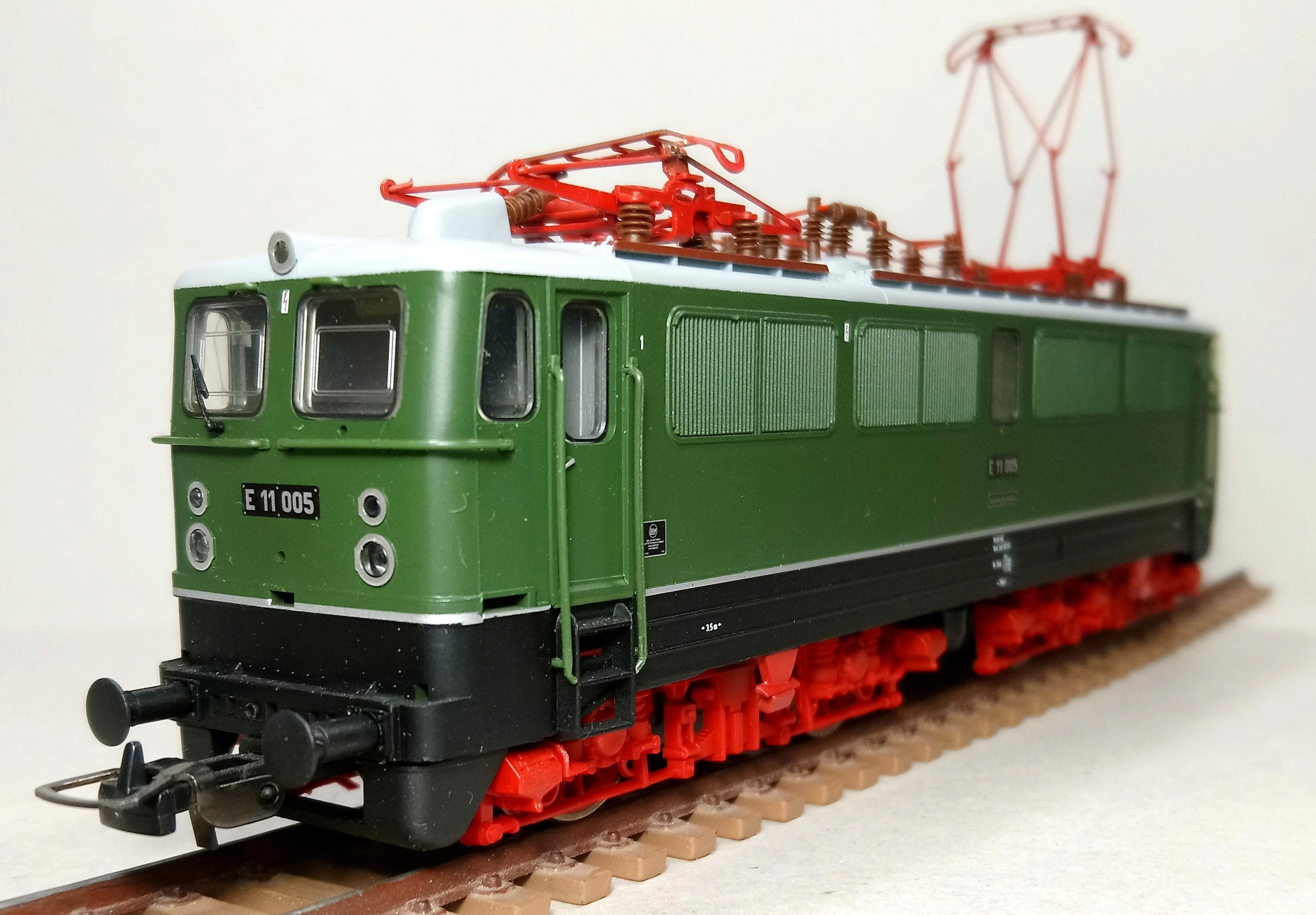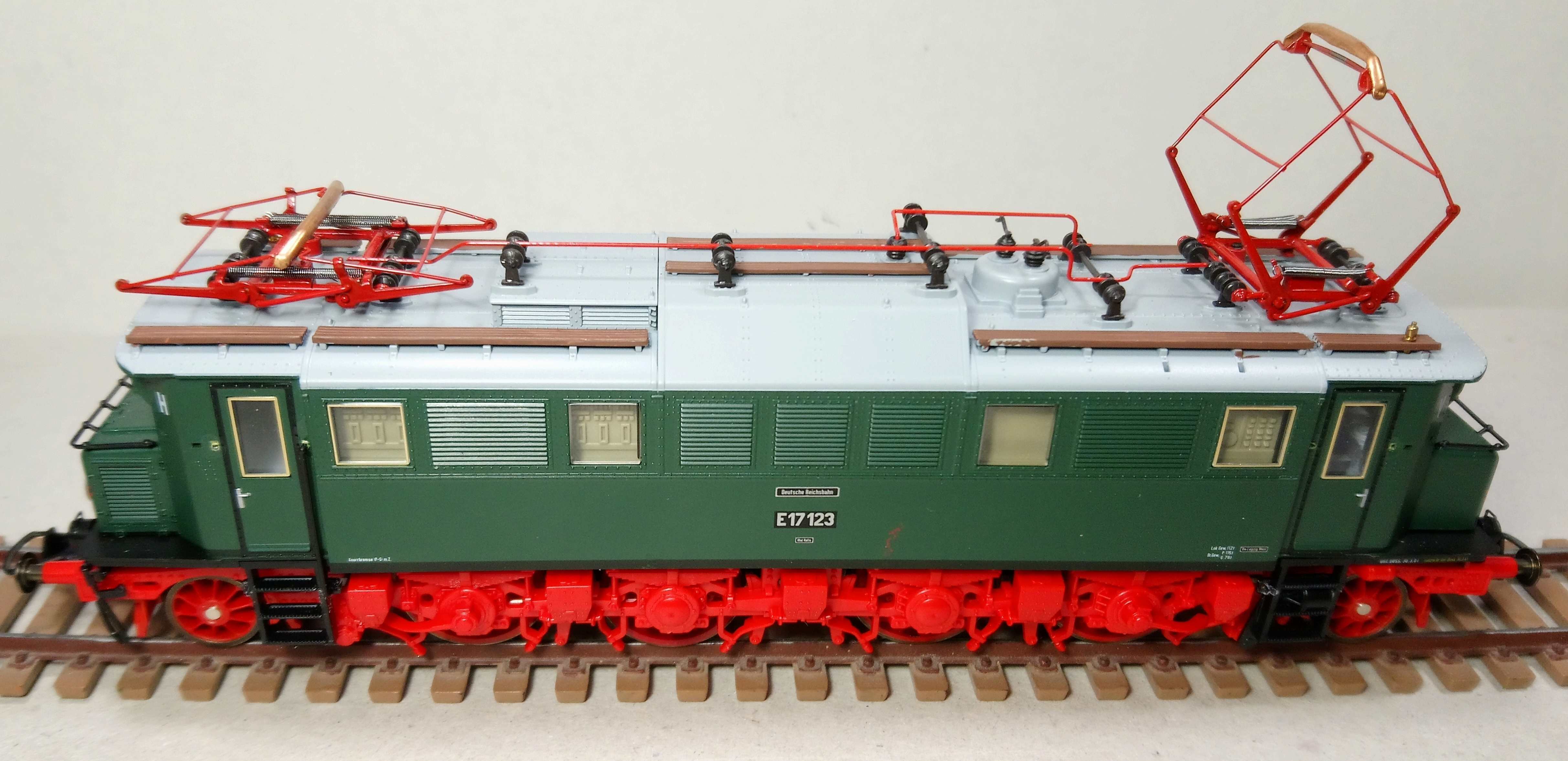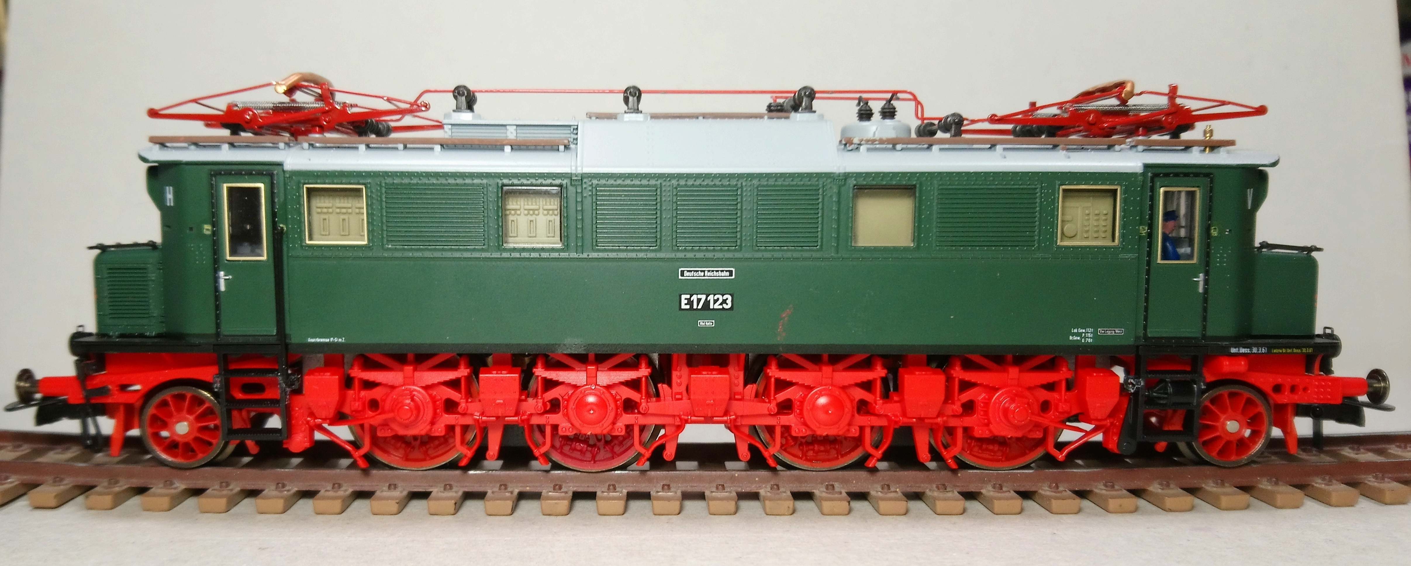 Да, Е17 с красной ходовой, красавчик. В DRG-шном наряде низ чёрный, поэтому эффект пластика, вообще не бросается в глаза. В своё время поразила ажурность литья всех этих рессор, тормозного оборудования, шлангов и песочниц. И действительно, очень плавный и тихий ход. С чем это связано не знаю, но по этим показателям модель выделяется даже среди некоторых своих соплеменников внутри бренда. У меня коллекция небольшая, но на памяти, это вообще самый тихий и самый плавный лок в ней.