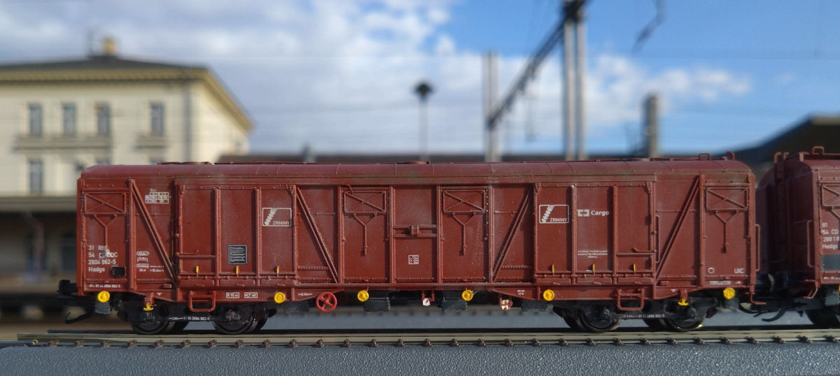 Рассказ о европейских хопперах будет неполным, если не упомянуть еще один промежуточный вариант вагона, а именно саморазгруз на базе крытого вагона. Такие вагоны были некой комбинацией, среднее между классическим хоппером (загрузка сверху, выгрузка через люки) и крытым со сдвижными дверьми. Эти вагоны применялись практически исключительно для перевозки пищевых продуктов, в первую очередь - зерна. Как и большинство европейских крытых четырехосных вагонов, они были характерны, в основном, для стран СЭВ (западная Европа от четырехосных крытых отказалась довольно давно) и на сегодняшний день почти не встречаются. Увы, увидеть не удалось ни одного.