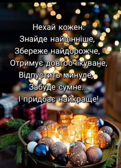 Нехай Новий рік додасть вас віри в майбутнє, життєвих сил, всі труднощі будуть переможені, а успіх супроводжує скрізь та у всьому.