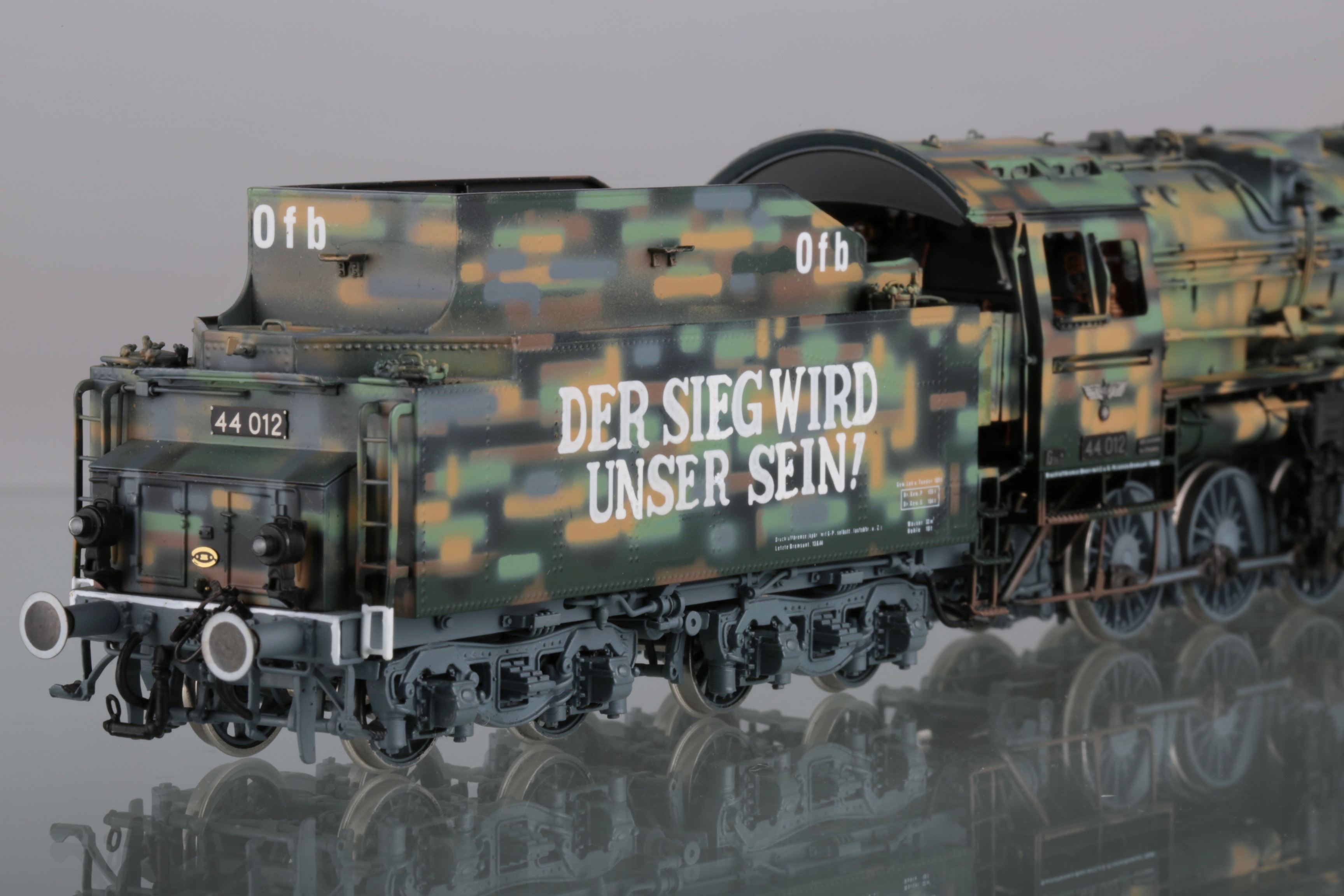 Сергей, вопрос совершенно корректный, приятно что Вы как и многие участники форума интересуетесь мелкосерийными моделями.На мой взгляд, все совершенно очевидно.Многие немецкие паровозы находились в движение с стандартным тендером 2'2'T32, на которые наносились стандартные для того времени лозунги, BR 44 012 находился в движении именно с таким тендером.