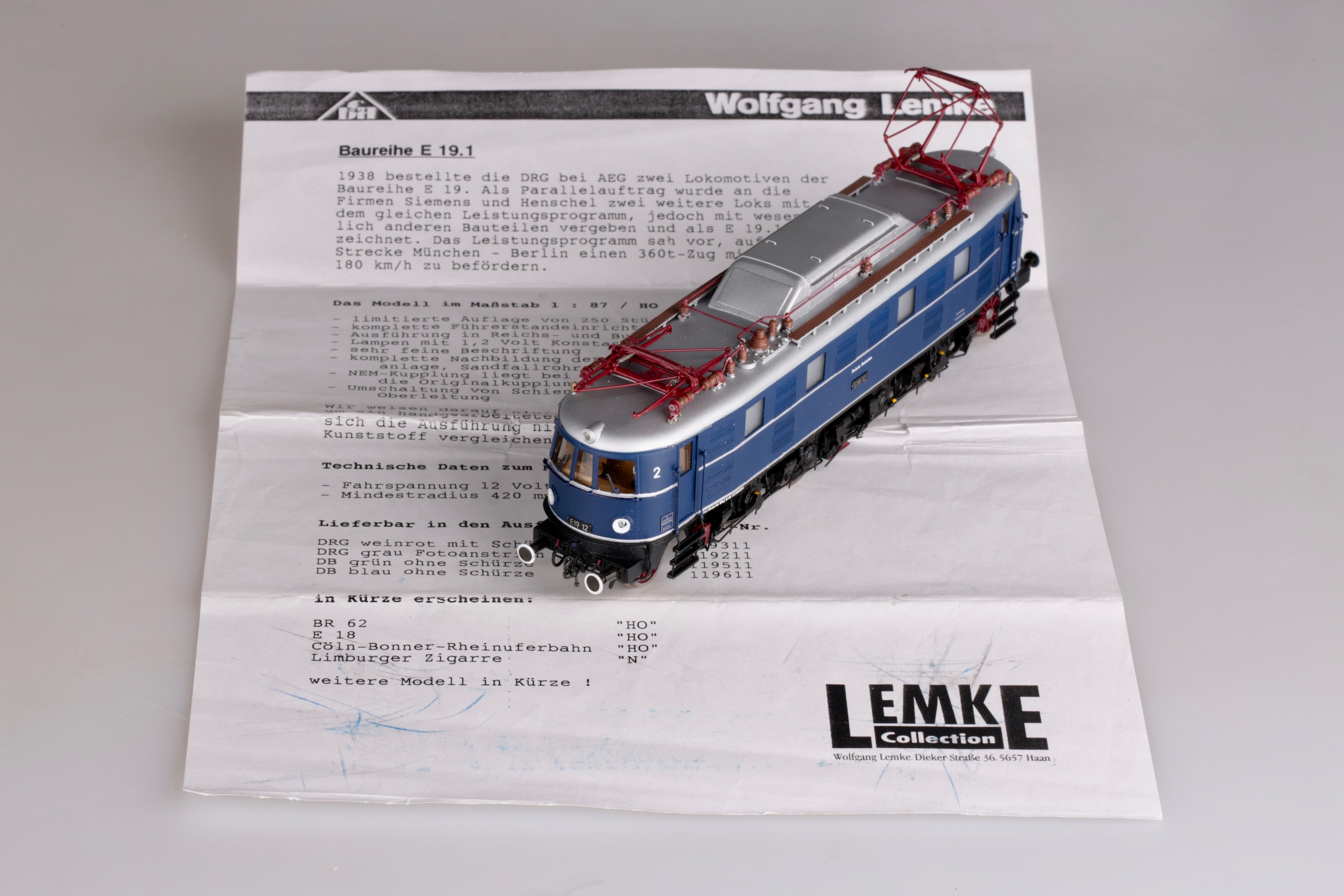 Модель электровоза BR E 1912 DB, Art.LD119611. Изготовлена в 1992 году, корейской фирмой Ajin. Всего изготовленно четыре версии, общее количество 250 экземпляров.