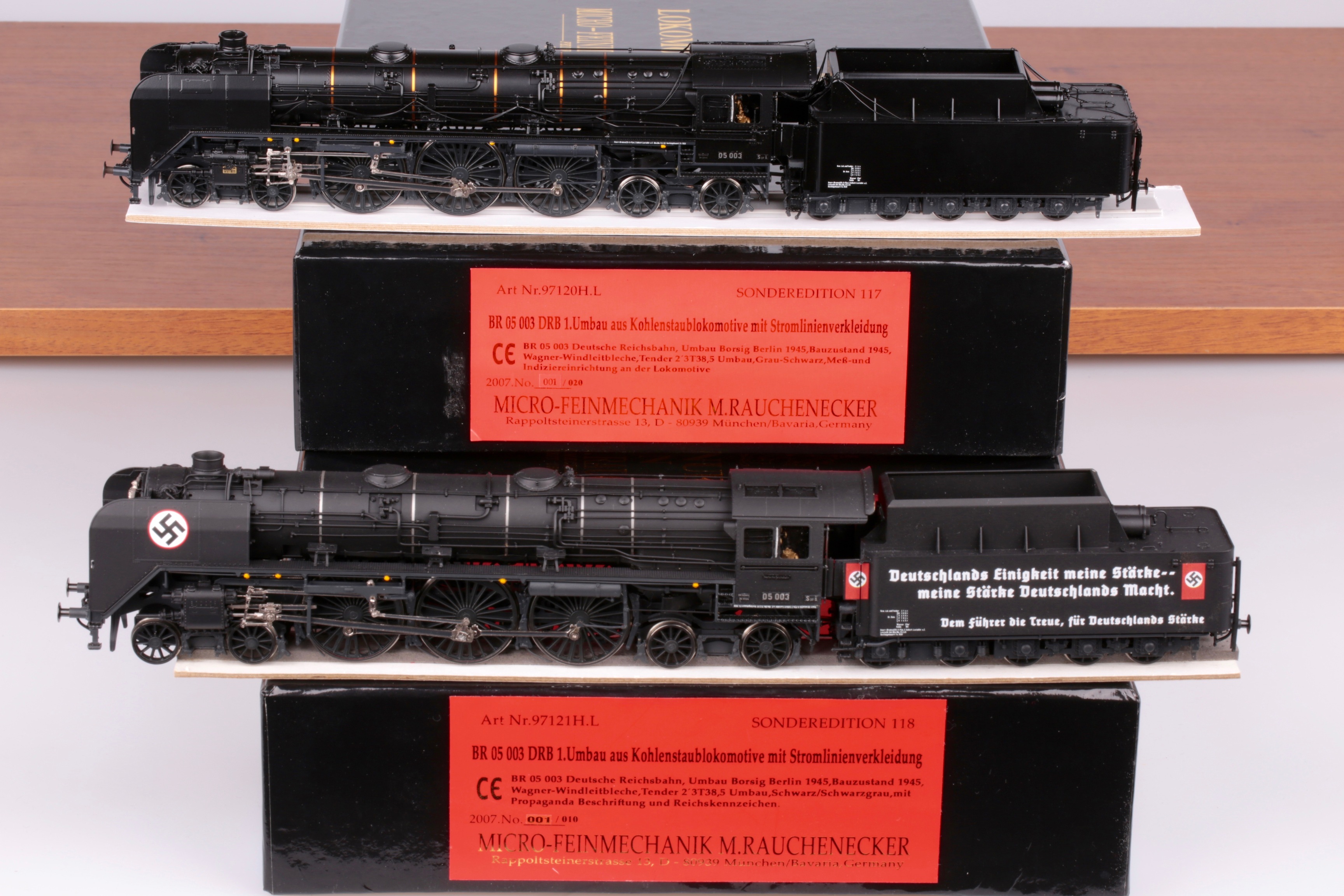 Я коллекционирую железнодорожные модели более 35-лет и для меня в первую очередь важна сама модель,мастерство ,с которым она сделана,точность, максимальное соответствие прототипу, редкость, ексклюзивность и....естественно историческая достоверность. Не буду спорить ,что на некоторых Метакитовских моделях последних лет выпуска встречается очень спорная пропаганда и лозунги,но в основном это касается австрийских и восточноевропейских версий. И на вопросы- было- не было, очень непросто ответить односложно и утвердительно.Но BR 05 003 очень известный и легендарный локомотив.Поэтому маловероятно ,думаю практически не возможно, что всеми уважаемая германская! компания, которая строит модели топ- уровня и в музейном качестве, допустила вариант "по -мотивам" .Тем более ,что все без исключения модели Metakit очень тщательно и подробно обсуждаются на предмет точного технического соответствия и исторической достоверности на всевозможных профильных ресурсах,людьми,которые, поверьте на слово, очень "в теме". И учитывая возможность доступа компании ко многим ,включая и закрытые для обычных пользователей,архивам и оригинальным заводским чертежам, ошибки и неточности не только маловероятны,они практически исключены. Особенно в тот период ,когда Metakit делали нестандартные версии с особой точностью и тщательной проверкой на историческую достоверность.Вы даже не представляете ,насколько дотошная и "занудная" публика на азиатских и европейских железнодорожномодельных форумах,это не американцы, для которых "по-мотивам" -это норма.Тем более ,когда речь о 05-м,я даже не могу себе такое представить.Просто очень хорошо помню обсуждение и шквал критики после выпуска 18 201 от Фулгурекс, когда насчитали около двадцати ошибок и неточностей соответствия к прототипу.