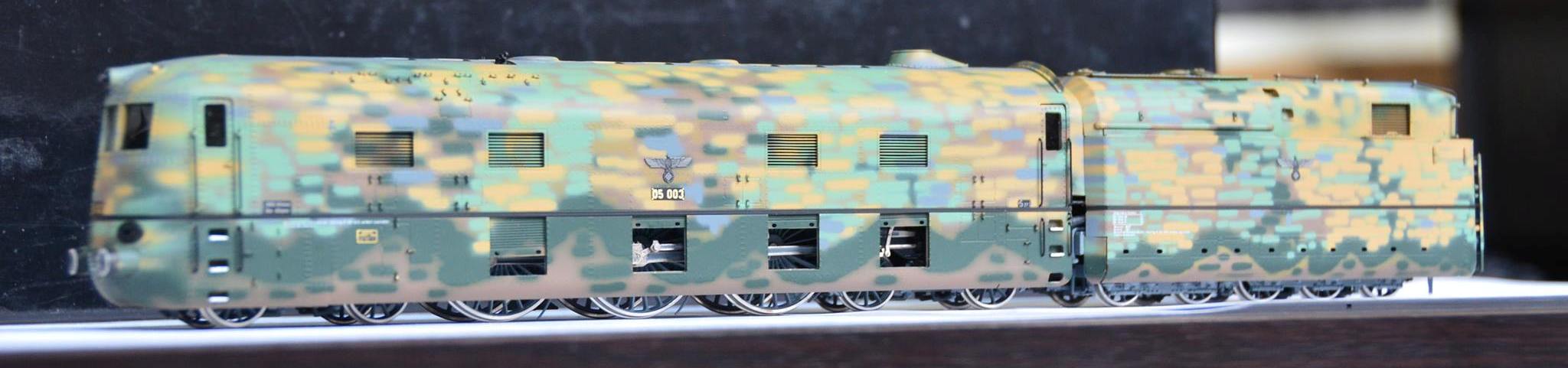 Никогда локомотивы DRG не окрашивались в танковый панцергрей. Включая и 05 003 после так называемой ре-модернизации в обычный паровоз. Возможно я видел и не все фото 05 003 после апгрейда, но если есть поделитесь. С пропагандой и свастикой на дымоотбойниках в 1945 году.