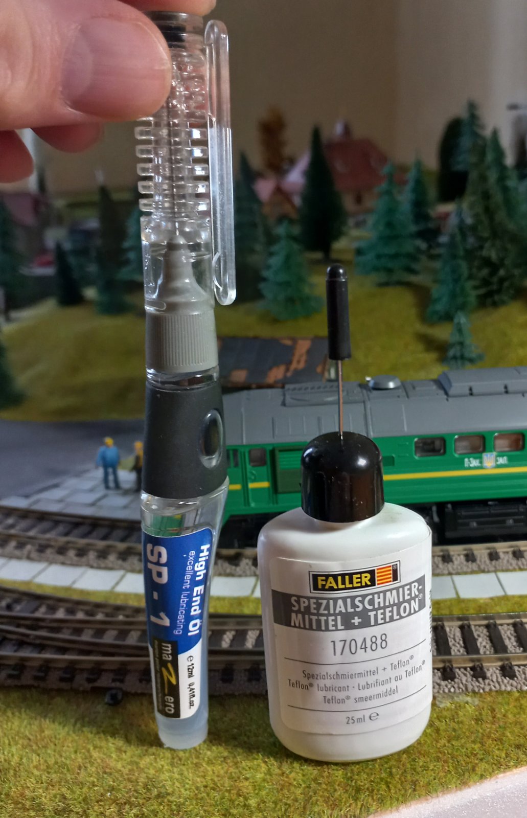 Доброго дня! Використовую от такі мастила: Зручне фасування, з голкою, що дозволяє охайно додати крапельку масла (актуально для змазки підшипників двигунів). MaZero прозоре, не лишає плям. Якщо кудись потрапило - легко прибрати серветкою. Не можу казати з повною впевненістю, але "на око" Faller довше тримається, бо MaZero за декілька місяців випаровується/висихає. Якось так.