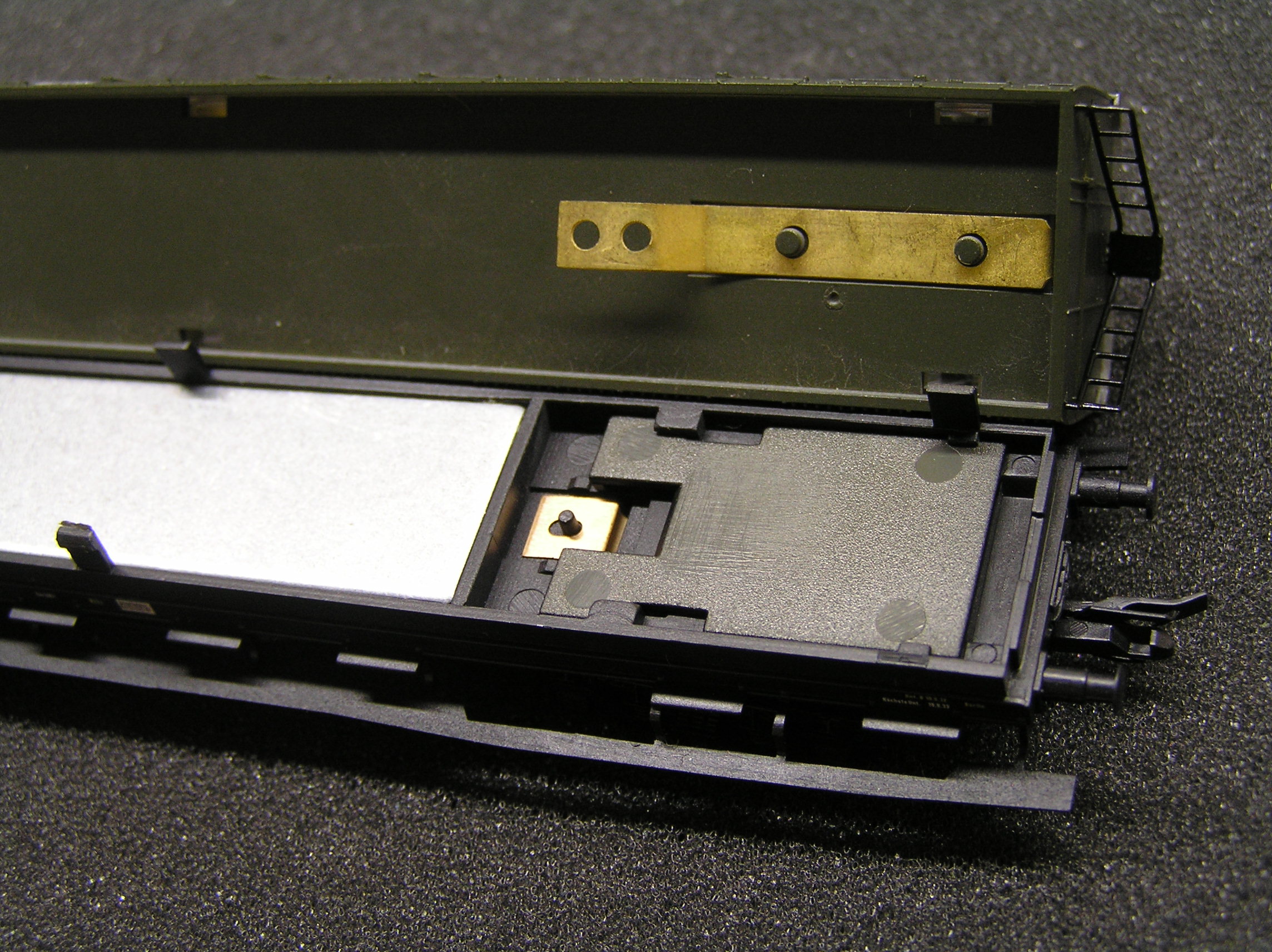 Данные вагоны имеют штатное место для установки платы освещения шириной 7мм. Цифровые платы от Viessmann имеют ширину 9мм. Из-за этого пришлось немного "расширять" посадочные места в имитации салона вагона.
