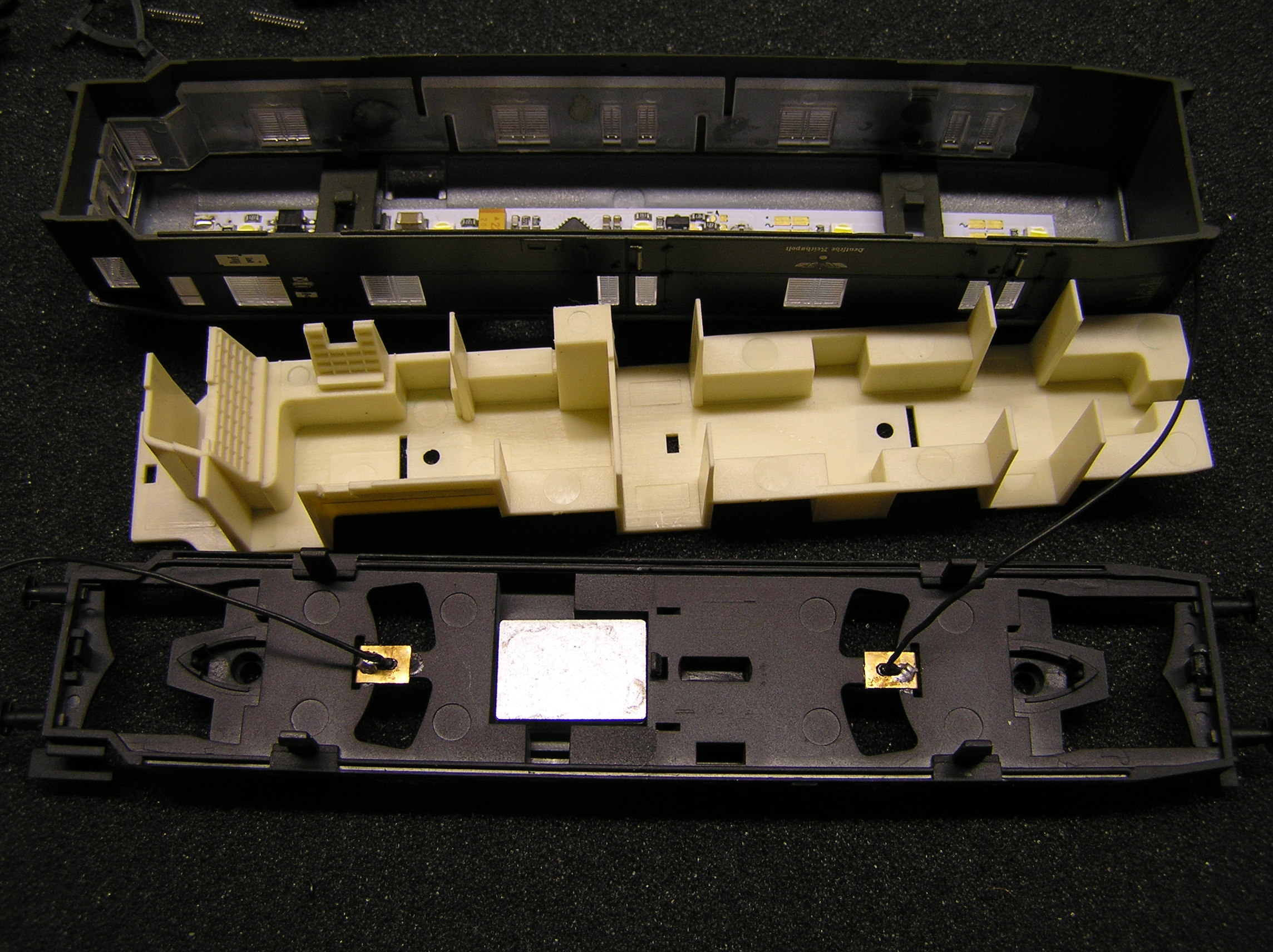Данный вагон имеет штатное место для установки платы освещения шириной 7мм. Цифровые платы от Viessmann имеют ширину 9мм. Плата была установлена с фиксацией под крышу вагона.