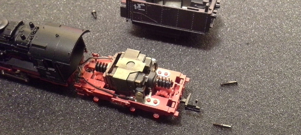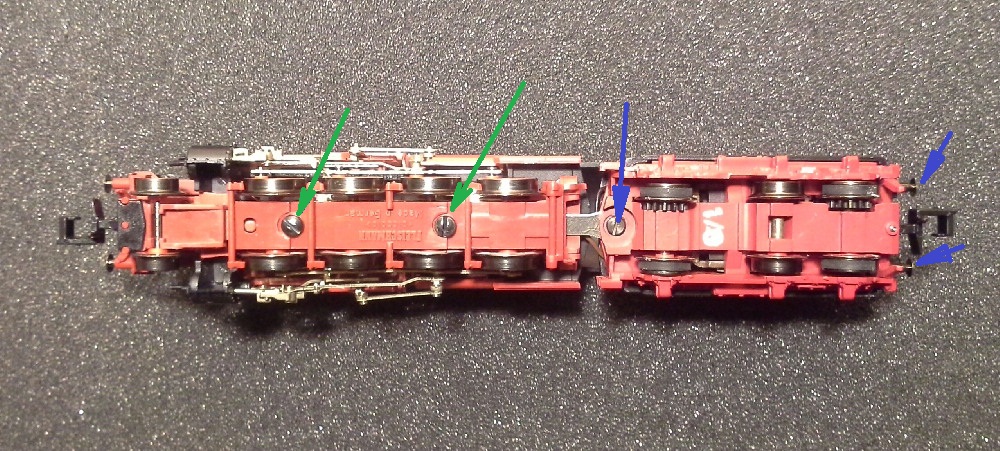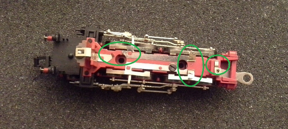 Для разборки лока необходимо выкрутить два шурупа фиксирующих котел, а для разборки тендера один винт у дышла и два буфера тендера имеющие резьбу.