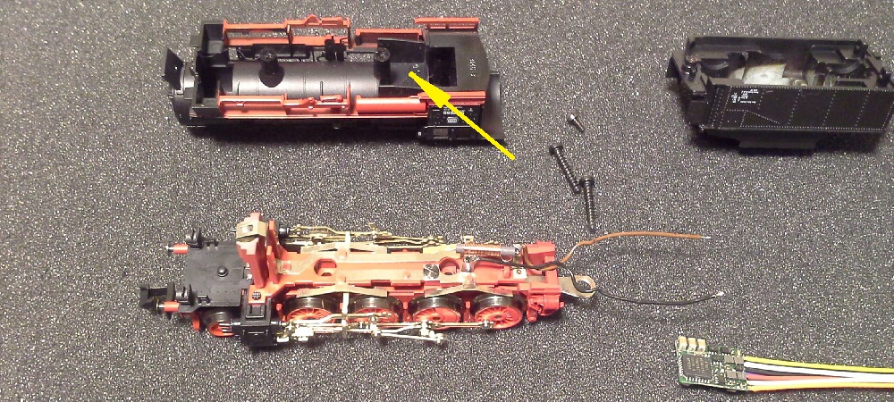 Первоначально планировался декодер Lenz Golg mini но в ходе работы оказалось, что он туда не влазит. Пришлось устанавливать подготовленный для оцифровки Z-ки Digitrax DZ126T. Но даже его необходимо было подготовить!