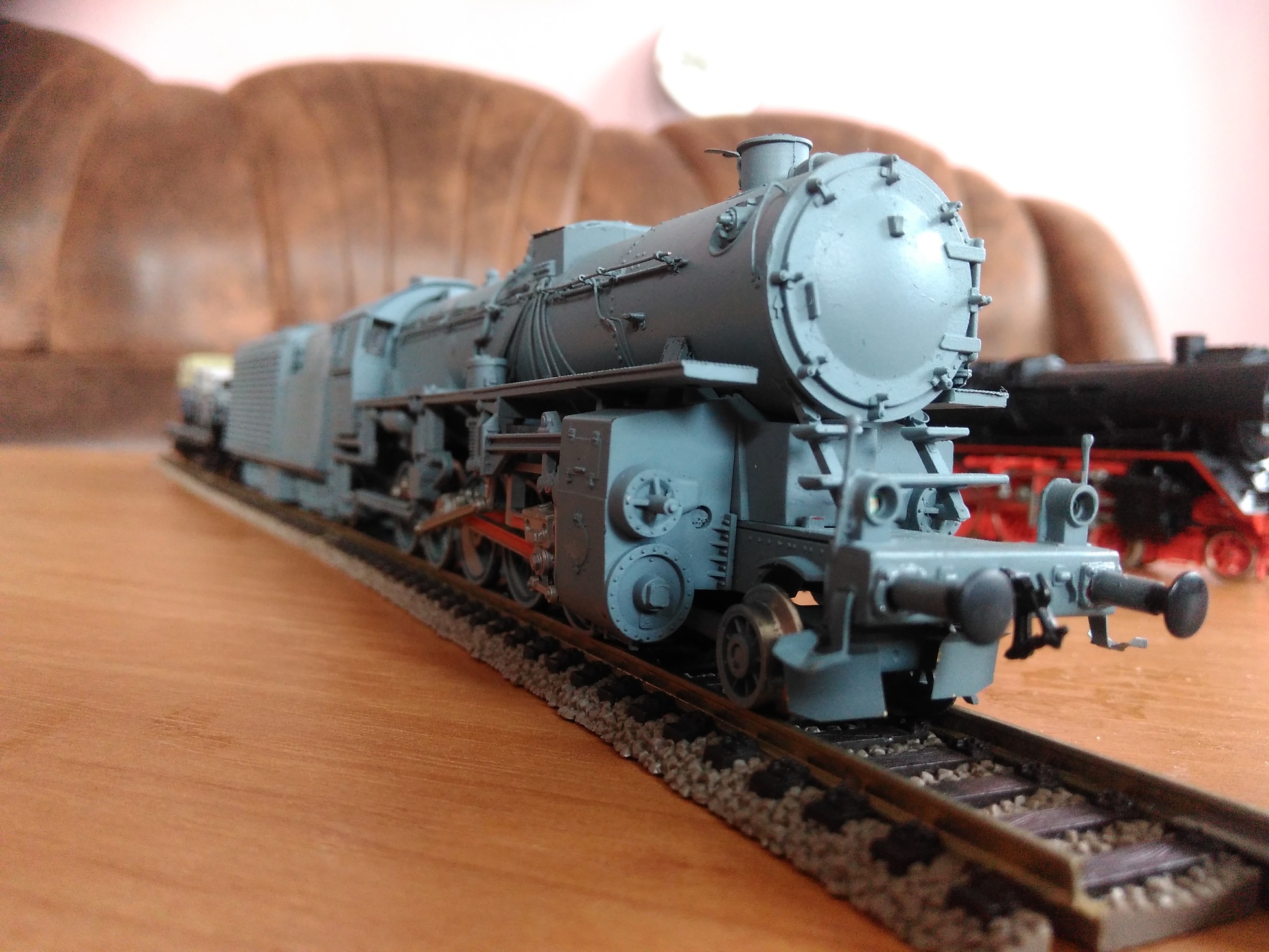 Он покрашен очень просто. Тупо серый с тонировкой, у меня с декалью проблемы: где (кроме ебея) купить на BR-52 декали не знаю, на выходных буду подбирать от ревеловских паровозов.Stinky писав:Довольно живо покрашен кригслок.