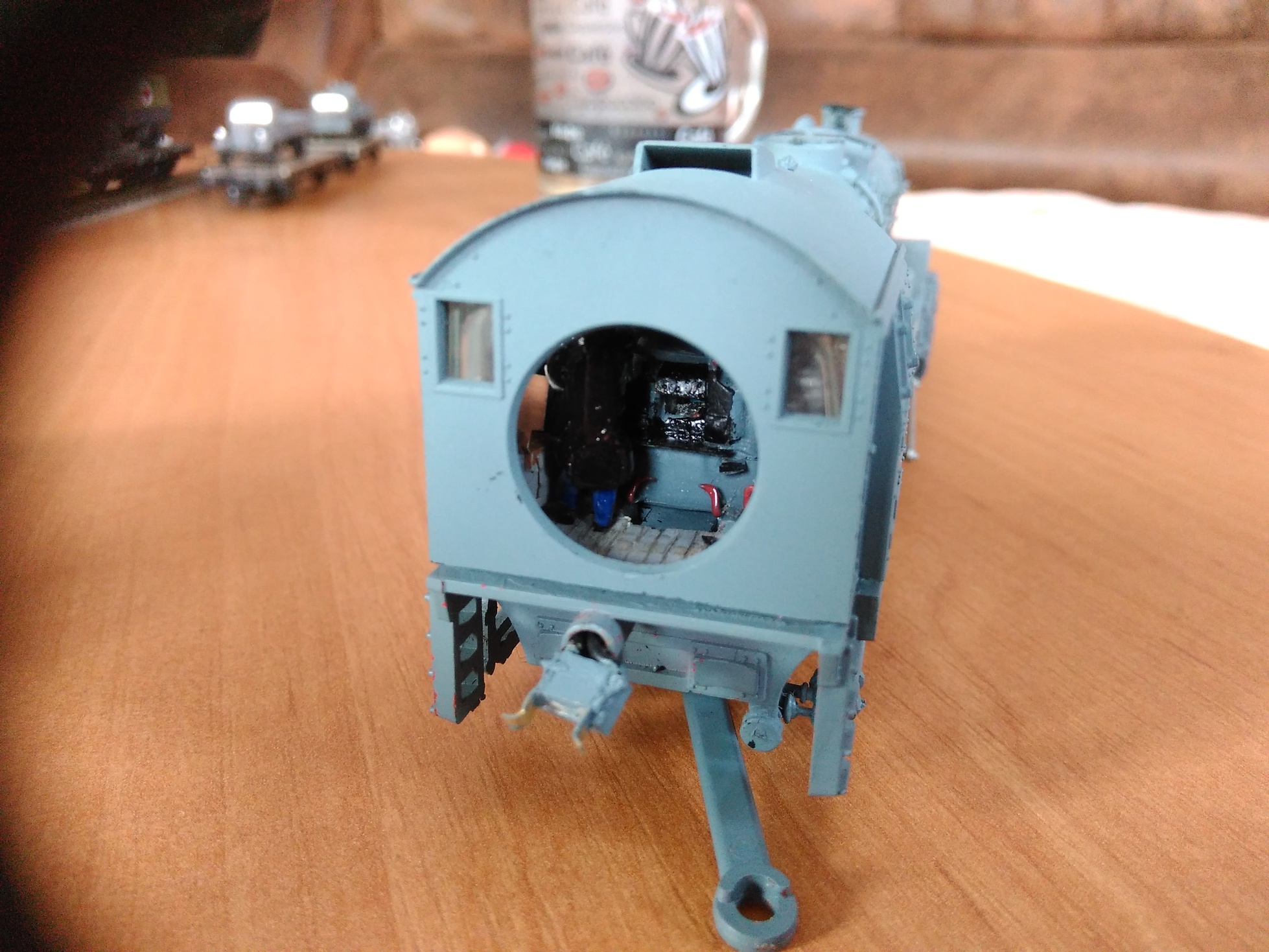 Модель очень серьёзно доделана. У PIKO короткий котел. Поэтому я нарастил спереди дымовую коробку. Спаял подножки на буферном брусе, полностью заменил обвязку котла трубками и проводкой, перенес Динамо ближе к будке, сделал тяги механизма управления турбиной, массу поручней и прочее, и прочее.