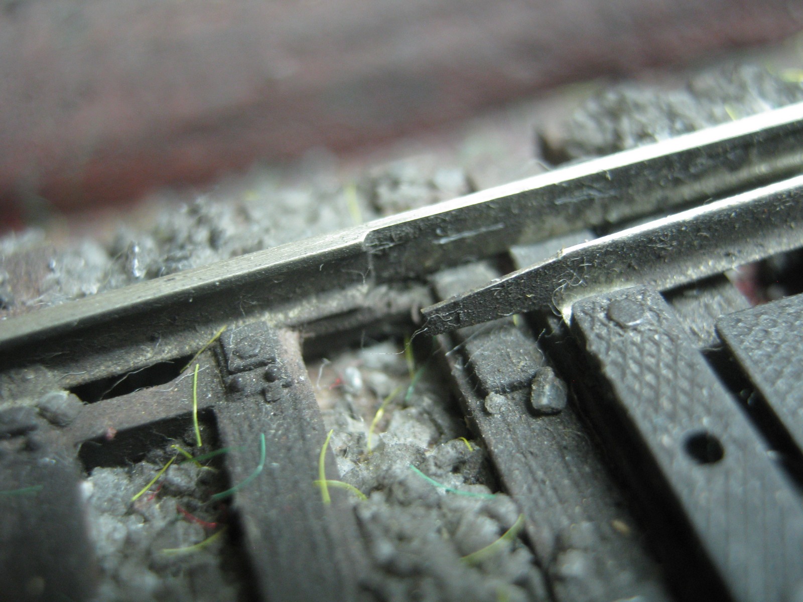 Еще можно сточить остряки на "нет" в местах прилегания к рамному рельсу. Только осторожно, что-бы не испортить стрелку.