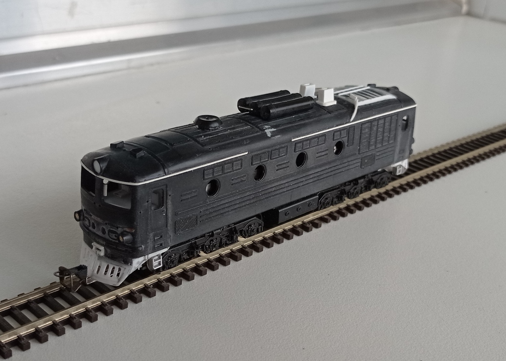 Про крышу я думал, но, во-первых, у меня слишком темный оттенок серого (было бы не очень), а во-вторых, захотелось оригинальный тепловоз без стыка цветов на границе с крышей, как у всех остальных.