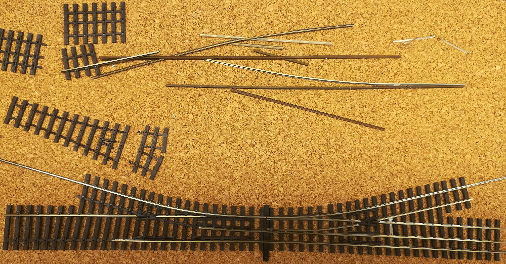 Як вже вижче зазначив, вирішив заморочитись... Буду не просто підрізати, а й зменьшувати кількість стиків. Для цього розбираю стрілки і виготовляю цільні елементи.