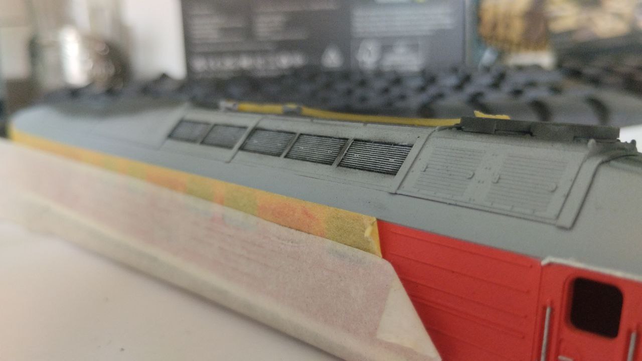 После везеринга было принято решение о полной перекраске, изначально хотел сделать ТЭ109-017 в голубом окрасе, но в последний момент решил сделать машину под 016 номером.