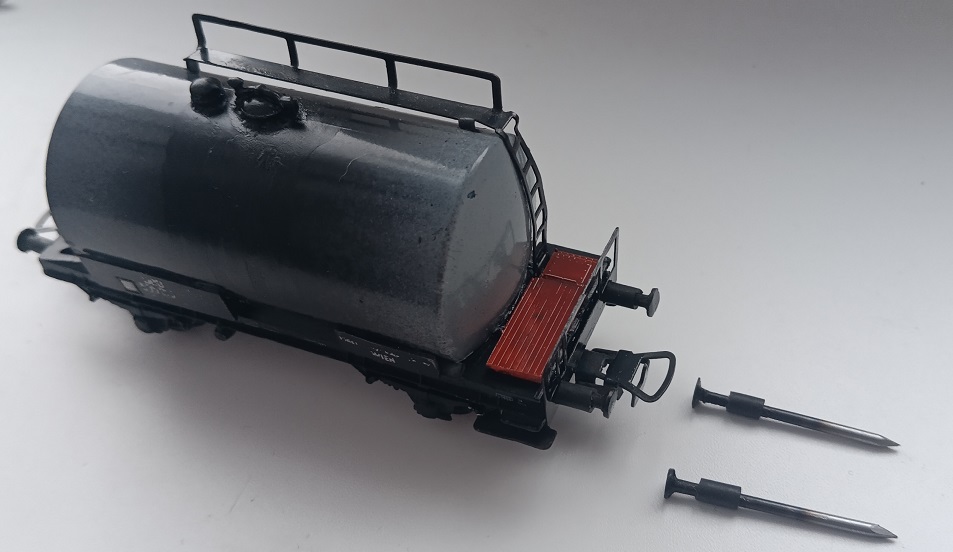 я зазвичай для локомотивів роблю спрощені зчіпки без накидної петлі. Як на мене, воно охайніше і компактніше виглядає, що грає велику роль з малих локомотивах