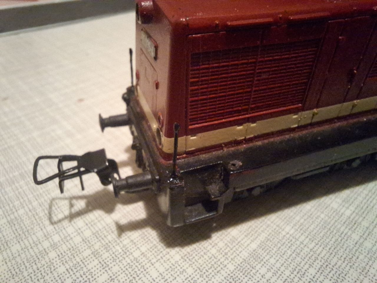 Вечорами ліниво попилюю щось, по дрібницях, сил нема на щось серйозне. Ось поручні для Br110 Gutzold. Просвердлив корпус на торцях на 4-5мм вглиб, вставив ізоляцію від тонкого провідка, туди обрізки гітарної струни, наляпав туди чорної фарби. На макро дуже не айс, але слава богу, що в свої 29 вже посадив зір, то без макро лаж не бачу)
